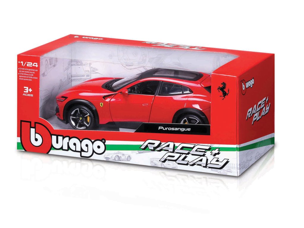 Modely automobilů Ferrari v měřítku1:24 z kolekce Race+Play jsou sbírkou krásného designu s vysokým důrazem na přesnost detailů. Modely jsou vyrobeny z litého kovu s plastovými detaily. Většina modelů z kolekce má otevírací dveře, kufr nebo kapotu. Některé z modelů mají pohyblivý volant. Assort je náhodný mix modelů. Výběr nelze ovlivnit. Baleno v krabičce. Nevhodné pro děti do 3 let. Rozměry balení: 25,7 x 51,8 x 32,4 cm. Věk 3+