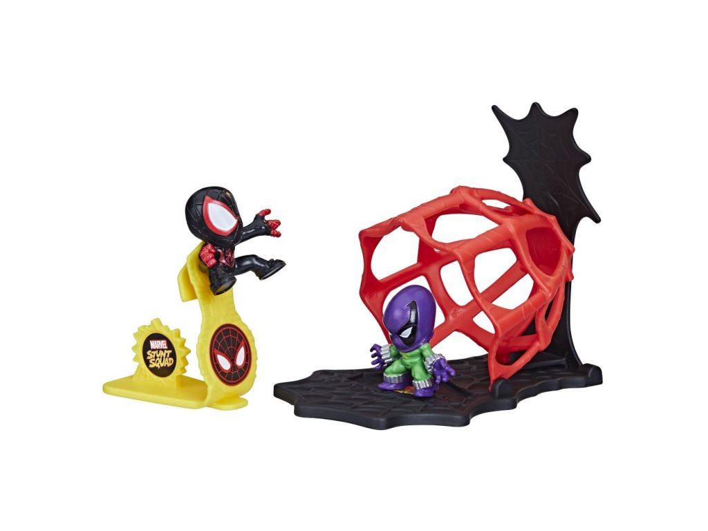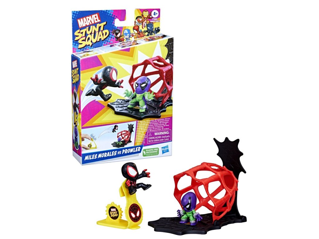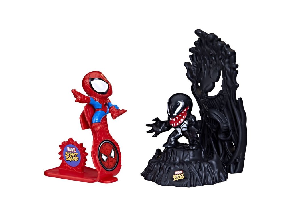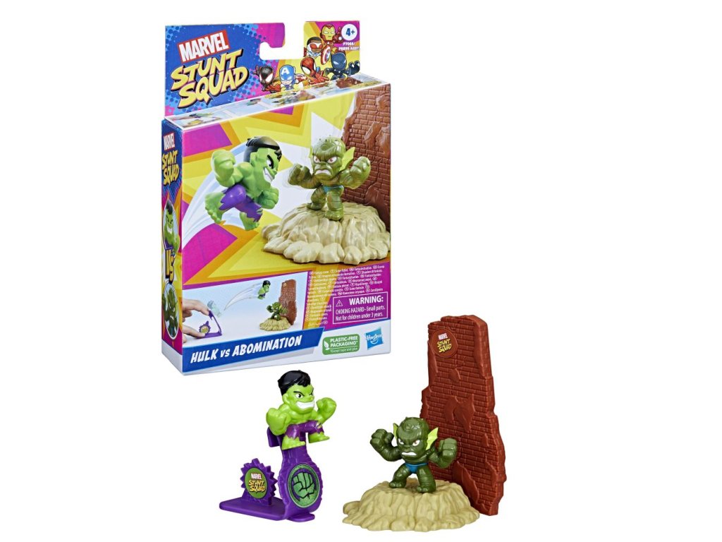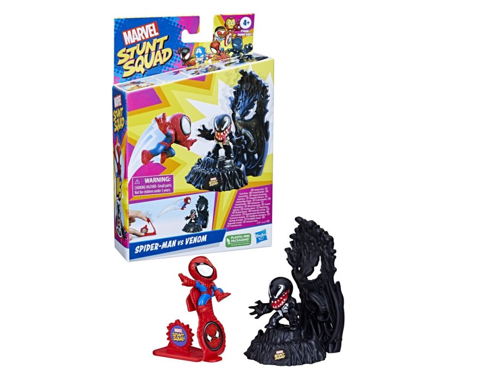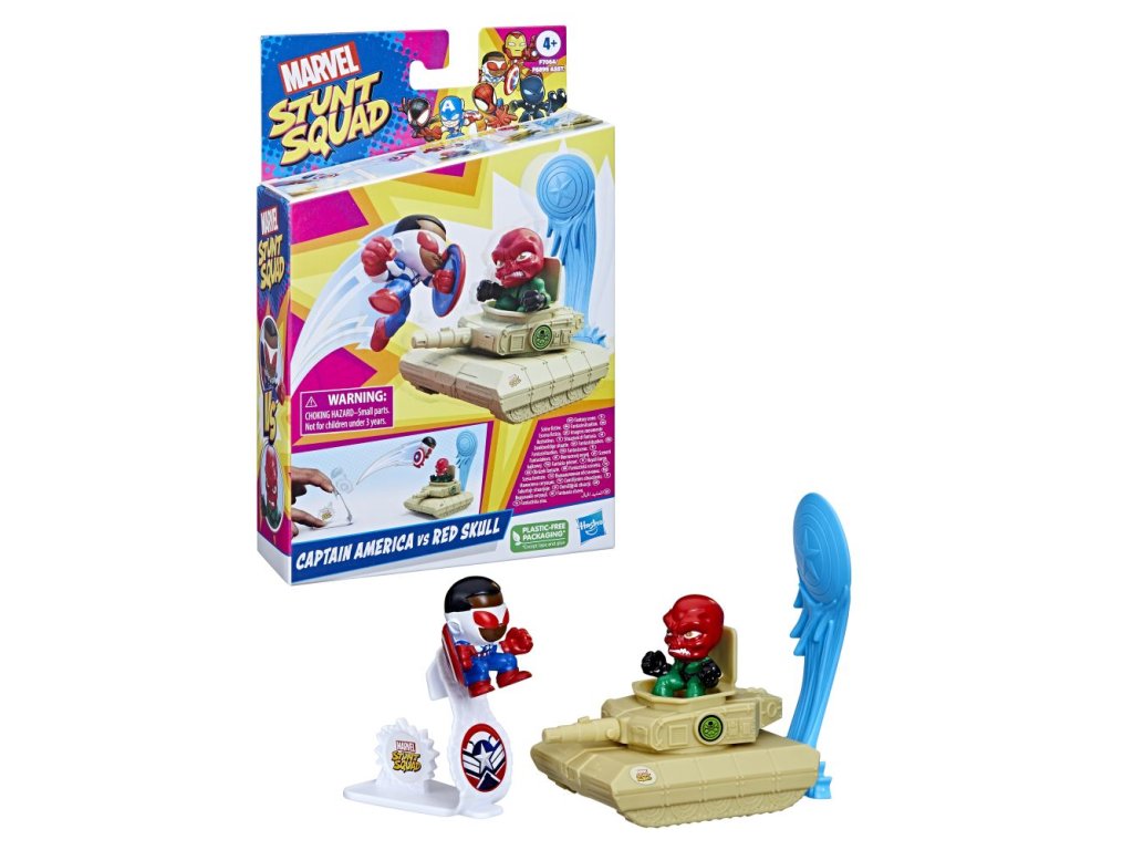 Mocní hrdinové, mega přístup! Marvel Stunt Squad - herní sada akčních figurek, kterou si děti zamilují. S oblíbenými postavami Marvel v klasickém herním schématu hrdina versus padouch jsou tyto malé figurky superhrdinů plné dynamických pozic a akční zábavy! Herní sady Marvel Stunt Squad Hero vs. Villain obsahují dvě figurky v měřítku 2,5 cm, odpalovací zařízení a cílovou základnu.