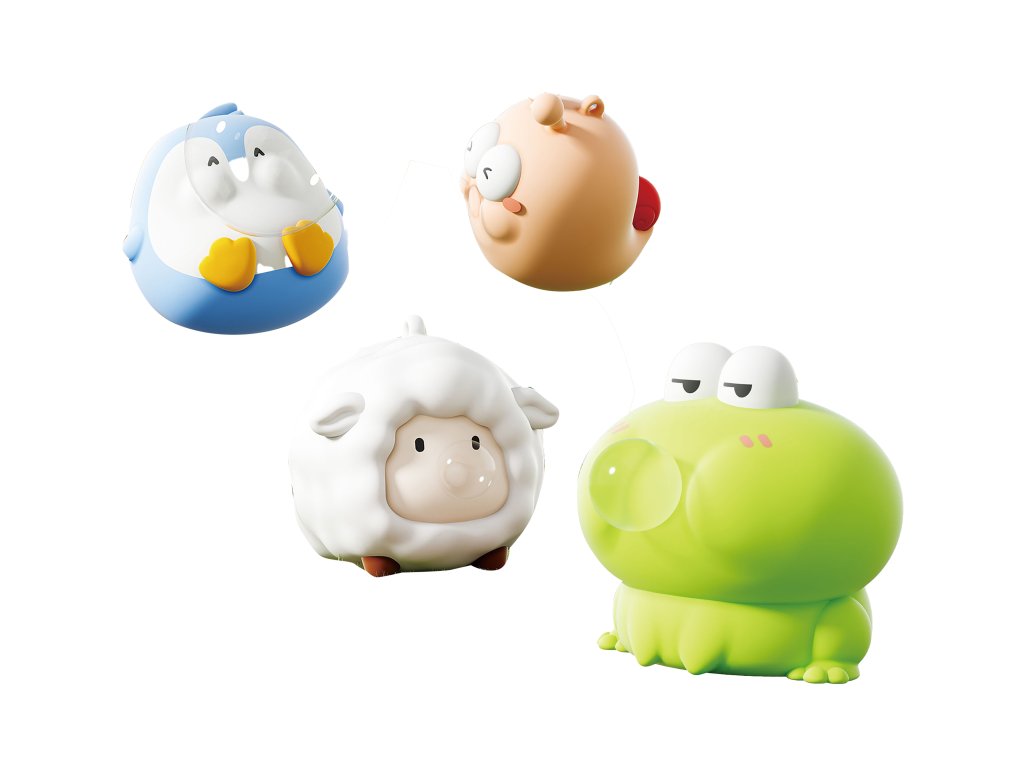 Zvířátko mačkací s bublinkou. Rozměry 8x6x6 cm. Display box 12 ks.4 varianty: šnek, žába, ovce, tučňák