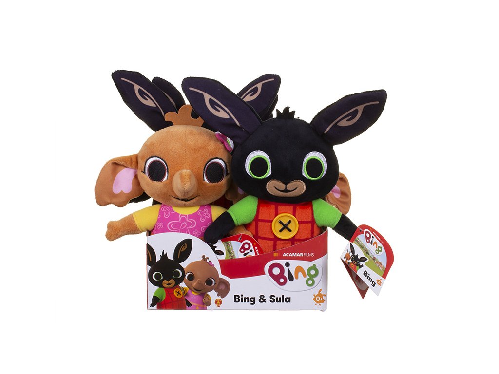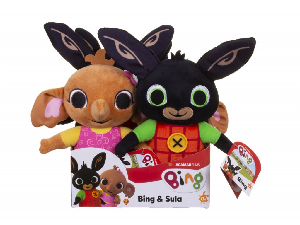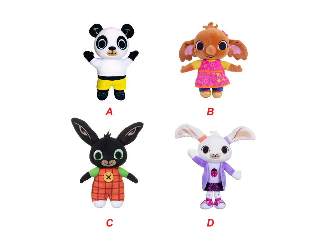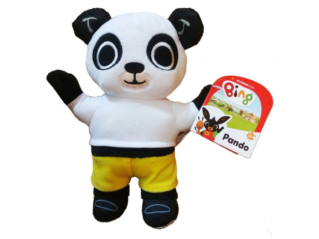 Plyšové postavičky BING, SULA a PANDO z populární pohádky králíček Bing. To jsou hrdinové, které děti zbožňují. Kterého si vyberete vy? Králíčka Bing s černou srstí, zelenýma očima a špičatýma ušima, oblečeného v zeleném tričku a červených montérkách, zdobených žlutým knoflíkem? Nebo to bude slonice Sula oblečená v růžových šatech, zlatých botičkách a s motýlem na hlavě? Nebo to bude Pando v bílém tričku a žlutých kraťasech? Plyšové hračky jsou vyrobeny z vysoce kvalitního materiálu. Vhodné pro děti od narození.