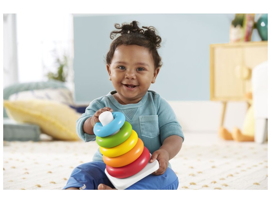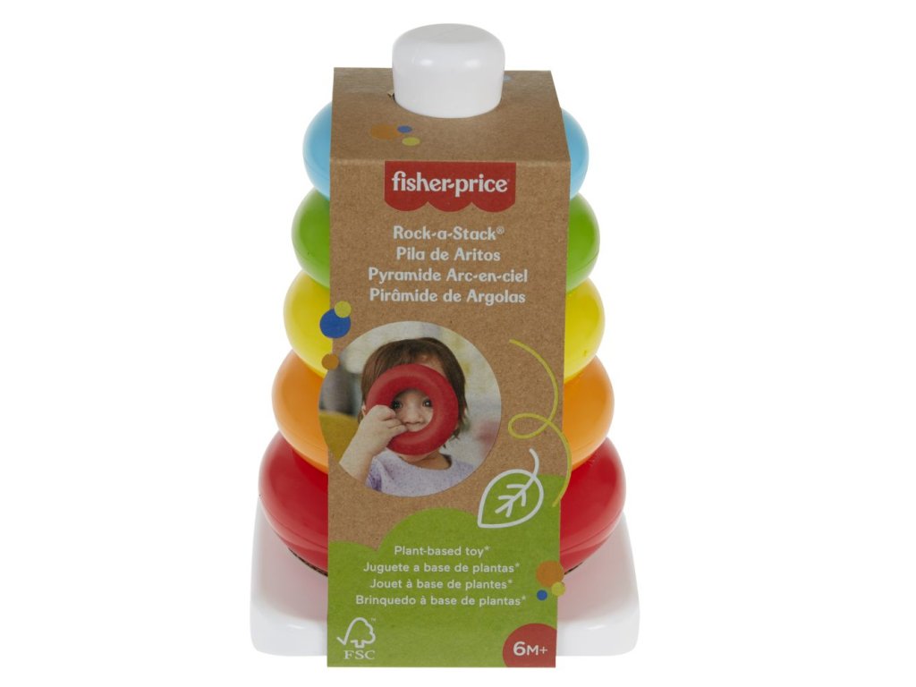 Konečně ... kroužek na vrchol všech. Tato hračka Fisher-Price® Rock-a-Stack® vyrobená z rostlinných materiálů * nabízí dětem klasickou zábavu při skládání na sebe. Je vybavena kolíbavou houpací základnou a 5 barevnými kroužky, které mohou malé ruce uchopit a dávat na sebe. Stohování pomáhá dítěti rozvíjet koordinaci ruka-oko a seznamuje ho s konceptem relativní velikosti, když se učí třídit a vršit od největšího po nejmenší! (* Hračka je vyrobena minimálně z 90 % z ethanolu extrahovaného z cukrové třtiny.)