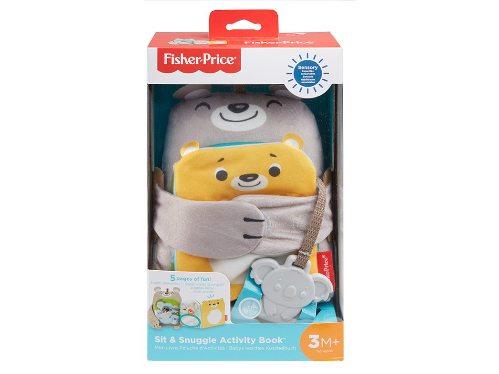 Senzorická knížka Fisher-Price® je roztomilá pohádková plyšová hračka plná aktivit určených pro rozvoj smyslů vašeho miminka! Obsahuje 5 pestrobarevných stránek, na nichž najdete unikátní aktivity pro rozvoj různých smyslů děťátka. Jedna stránka je plná záhybů a je na ní malý medvídek. Na další je cinkající máma medvědice. Další stránka má na sobě zrcátko s vydrou, jiná obsahuje kapsičku s měkkým kousátkem v podobě koaly. Jinde najdete stužky pro rozvoj smyslů v podobě kůzlete a nechybí vytahovací lístek na stránce s lenochodem.