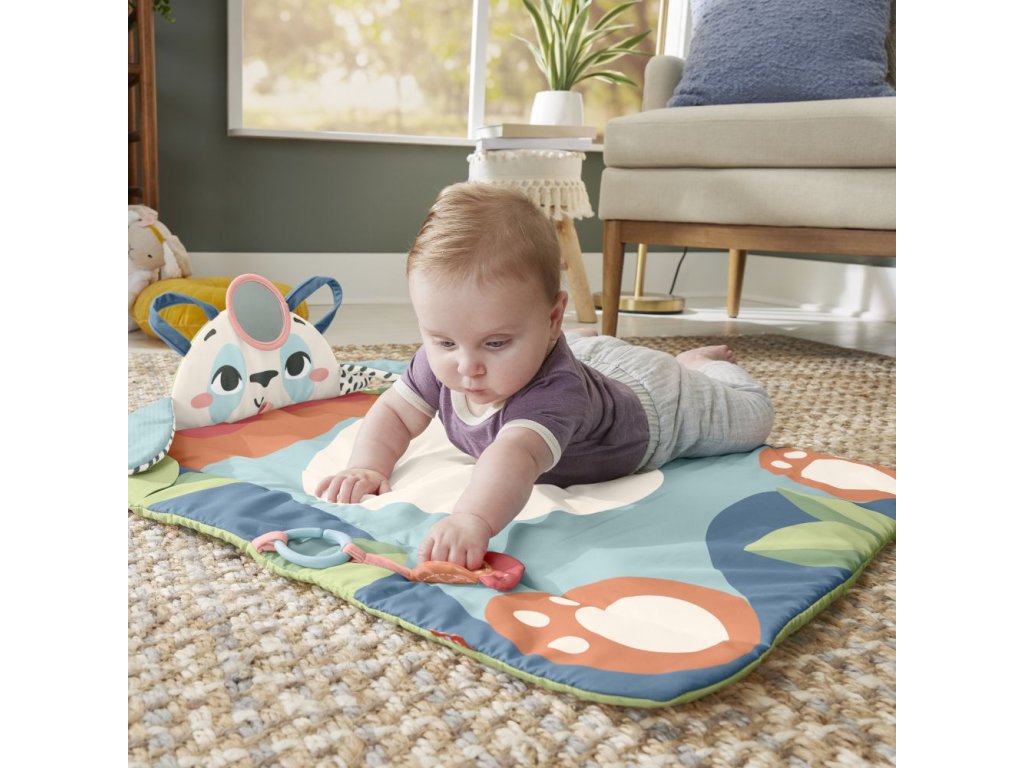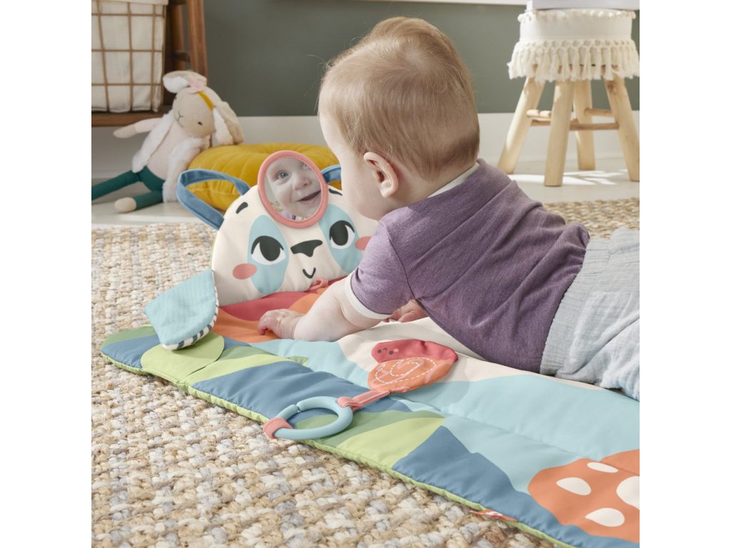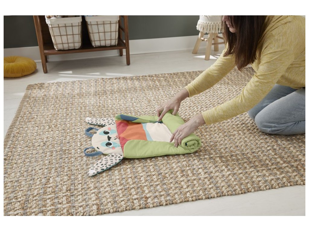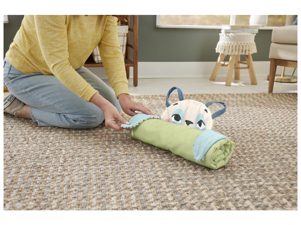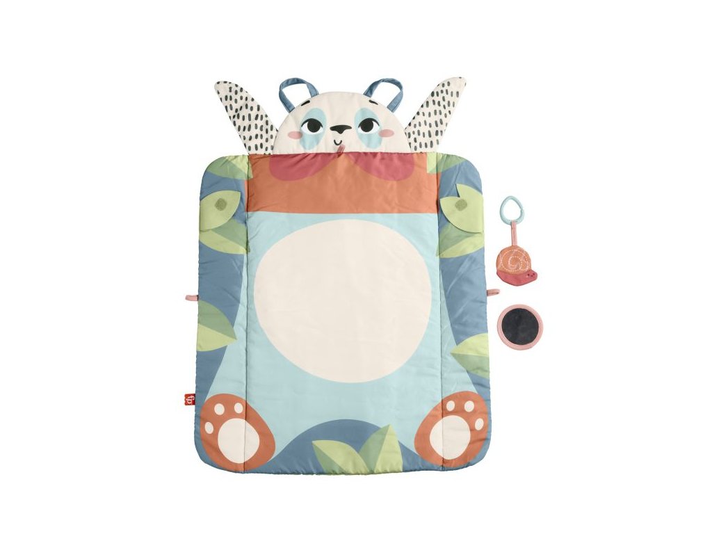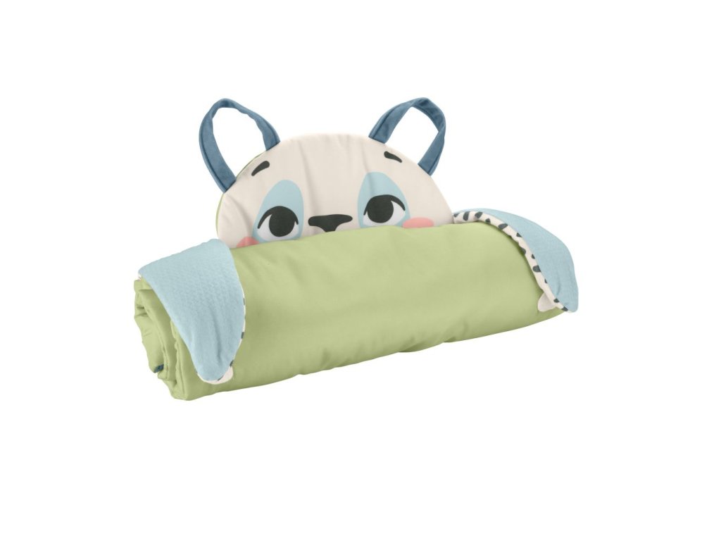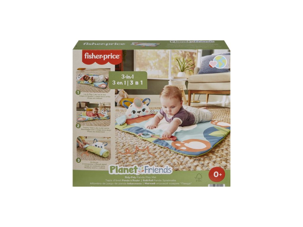 Hrací dečka s baculatou pandou od Fisher-Price® je inspirována zvířaty, na která upozornil Světový fond na ochranu přírody, používá látku vyrobenou z 90 % z recyklovaných plastů a je dodávána v obalu s certifikátem FSC, který podporuje odpovědné lesní hospodářství. Tuto velkou, všestrannou podložku 3 v 1 lze použít k ležení a hraní, pro čas na bříšku i při cestování. Tlapky podepírají výrazně kontrastní čelní panel pro dobu strávenou na bříšku nebo je lze použít k upevnění srolované podložky pro cestovní dobrodružství. Vrnící hračka a zrcátko pro sebepoznávání se spojují s panelem nebo se připevňují na poutka, aby hraní bylo stále inspirativní a zábavné. Podložku lze prát v pračce s vyjmutými hračkami.