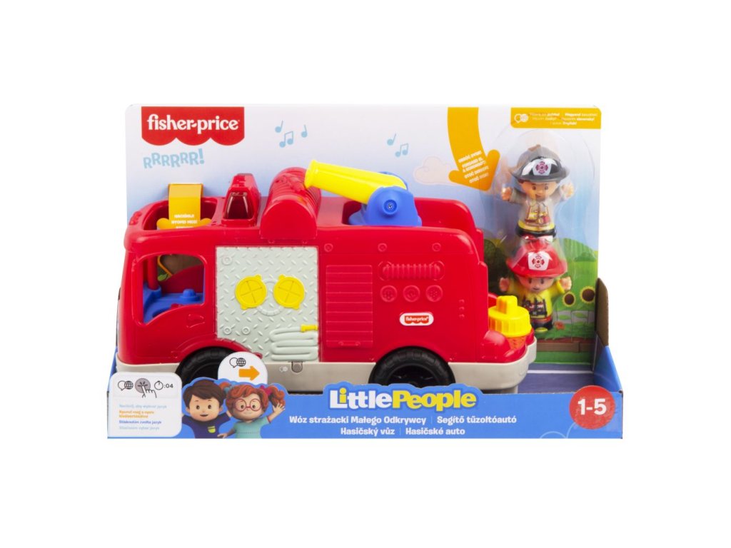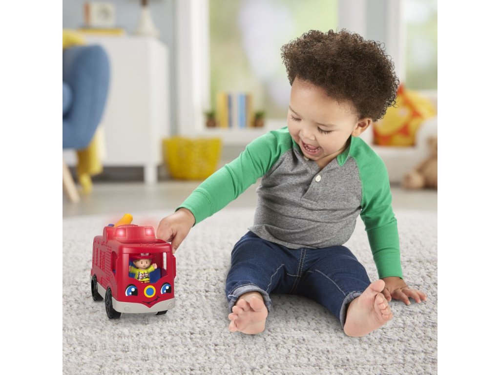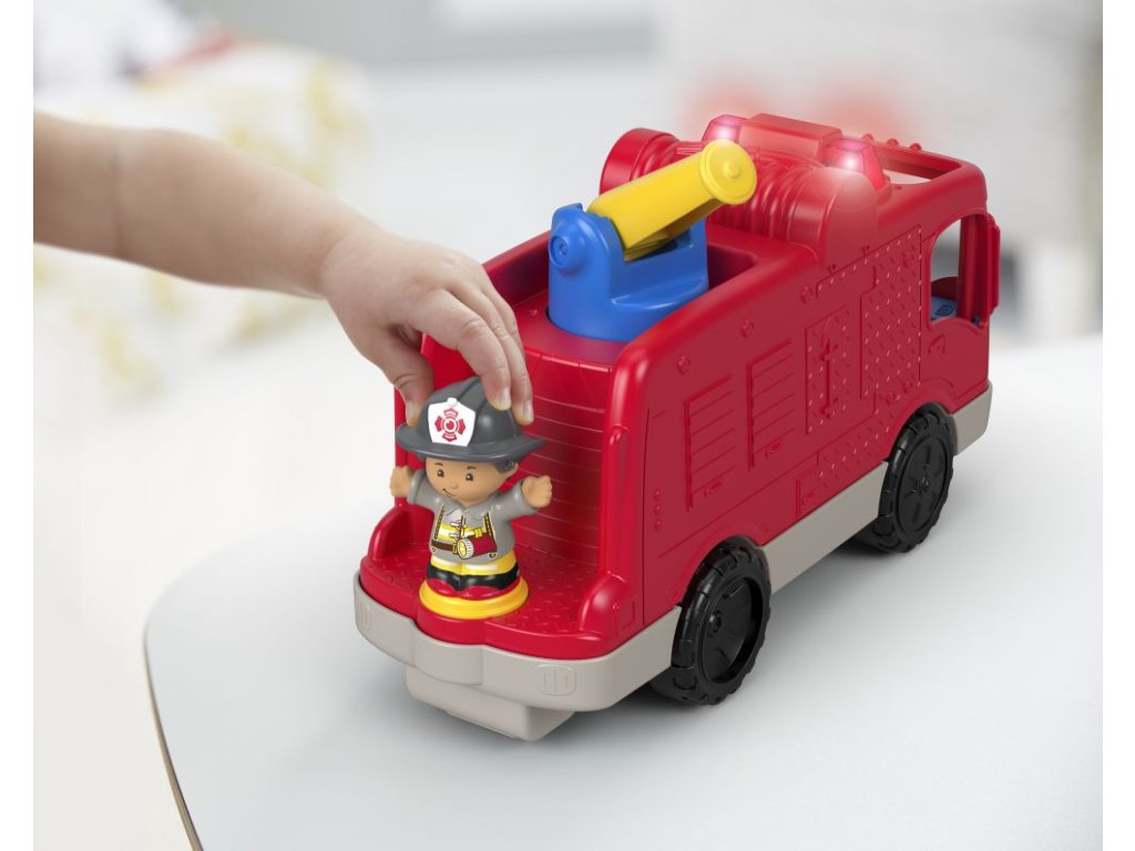 Batolata si zamilují vysílat hasičku Eriku a jejího partnera hasiče Karsona, aby se hnali do akce s hasičským vozem Little People® Helping others. Potřebuje někdo pomoc? Vzhůru za zachraňováním! Stiskněte postavu na sedadle řidiče a uslyšíte realistické zvuky, fráze a zábavné písně o týmové práci a pomoci ostatním. Děti si zamilují vytváření nejrůznějších vzrušujících záchranných misí s tímto autem Little People®! Díky snadno uchopitelnému vozidlu a postavičkám hasičů mohou batolata používat svou fantazii k vytváření příběhů během hraní.