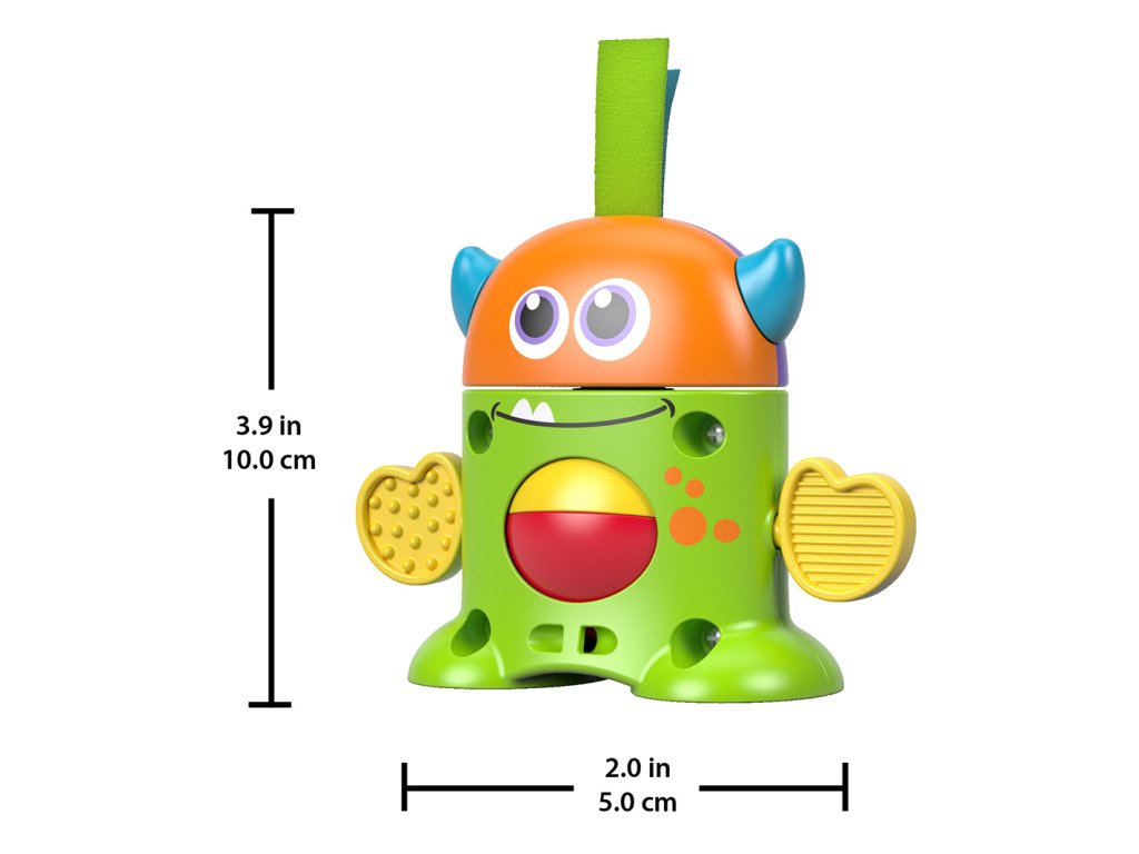 Díky spoustě zábavných aktivit a vzorů ke zkoumání pomůžou tato rozverná monstra vašemu děťátku zlepšit koordinaci zraku s pohyby rukou a učiní je celkově šikovnější. Každé monstrum je spojeno s jinou aktivitou – mačkavé pískátko, chrastítko, točítko a mnoho dalších! Všechny hračky samozřejmě také stimulují vyvíjející se dětské smysly. Nasbírejte je všechny a užijte si strašidelnou zábavu!