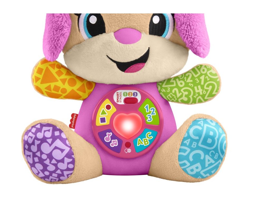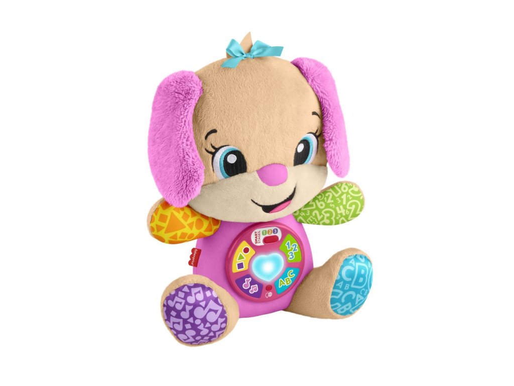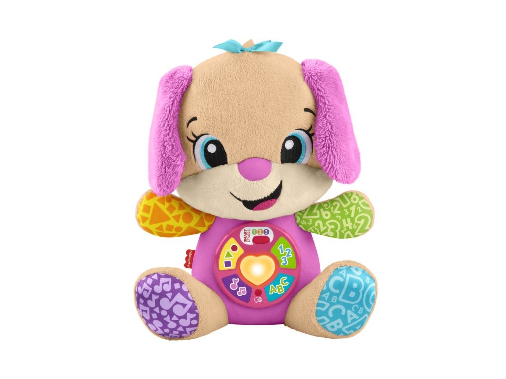 Mluvící pejskova sestřička Smart Stages® z řady Fisher-Price® Směj se a Poznávej!® je příjemná plyšová hudební hračka, která seznamuje dítě s abecedou, tvary, prvními slovy a dalšími prvky! Děti mohou stisknout 5 tlačítek na bříšku a sledovat, jak se její srdíčko rozsvěcuje barvami, zatímco hraje více než 80 písniček, zvuků a frází. Díky více než 12 originálním písničkám a 3 úrovním učení Smart Stages®, které rostou spolu s dítětem od kojence až po batole, se Mluvící pejskova sestřička stane nejlepší kamarádkou vašeho děťátka.