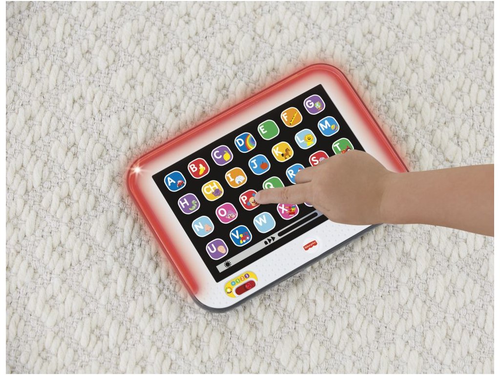 Tablet pro vaše nejmenší od Fisher-Price® obsahuje technologii Smart Stages™, což je vzrušující nový způsob, jak přizpůsobovat obsah učení s tím, jak vaše dítě roste! Ve třech úrovních hry nabízí celou řadu skladeb, frází a zvuků přesně vhodnou pro ten pravý vývojový moment vašeho nejmenšího. Dítě může stisknutím jednoho z 28 tlačítek „aplikací“ aktivovat zvuky a hudbu - a odemknout učení o písmenech, prvních slovech, zvířatech a ještě mnohem víc!