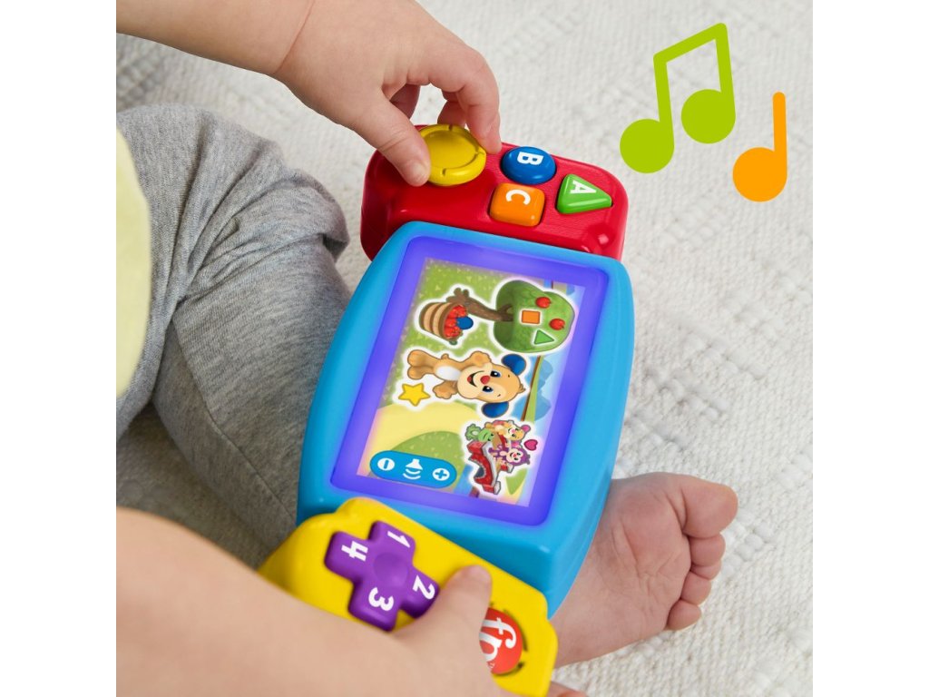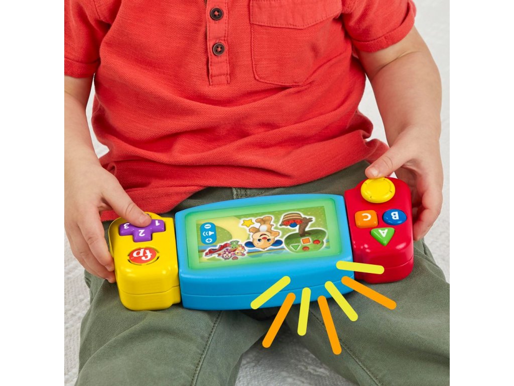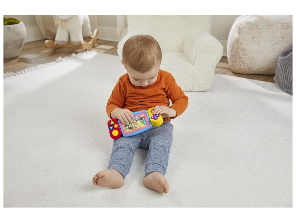 Fisher-Price® Zábavná herní konzole z řady Směj se a Poznávej! je určena pro nejmenší hráče a má více než 10 tlačítek pro aktivaci světel a výukový obsah, který učí vaše malé abecedu, počítání a další! Další aktivity zahrnují otáčení žluté rukojeti pro zábavné zvuky cvakání a posouvání červené rukojeti nahoru a dolů.
