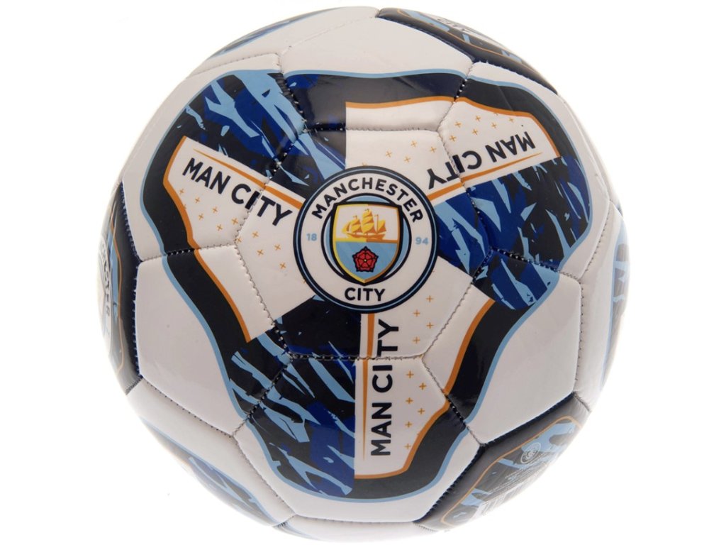 Hrací fotbalový míč v modro-bílé barvě s hlavním znakem fotbalového klubu FC Manchester City. Míč je vhodný pro každého menšího i většího fotbalového nadšence.