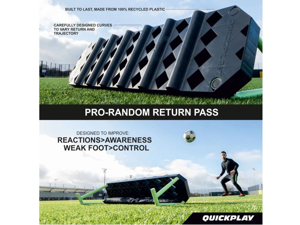 Fotbalová odrazová stěna Quickplay Replay Station je tréninková pomůcka pro hráče všech výkonnostních úrovní. Replay Station slouží pro zlepšení techniky přihrávek, zpracování míče a rychlejší reakci. Tento nahrávač nabízí nastavitelný úhel pro pestřejší trénink. Součástí balení je také vak na písek, díky kterému bude mít nahrávač lepší stabilitu (písek není součástí balení). Díky jednoduchému sestavení můžete trénovat kdekoliv a kdykoliv. Odrazová stěna je vhodná nejen pro trénink doma na zahradě, ale i pro fotbalové kluby. - materiál: LDPE, ocel, polyester - rozměry: 95 x 24 x 38 cm - hmotnost: cca 6 kg