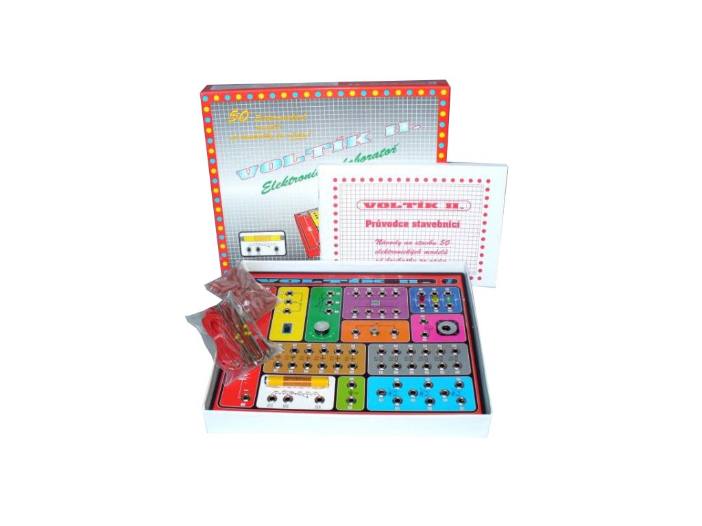 Stavebnice obsahuje vše pro stavbu 50 elektronických modelů bez pájení. Vhodné pro děti od 10 let.