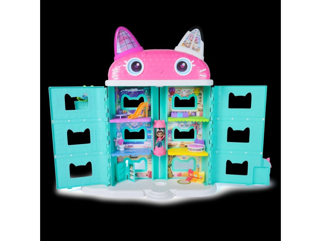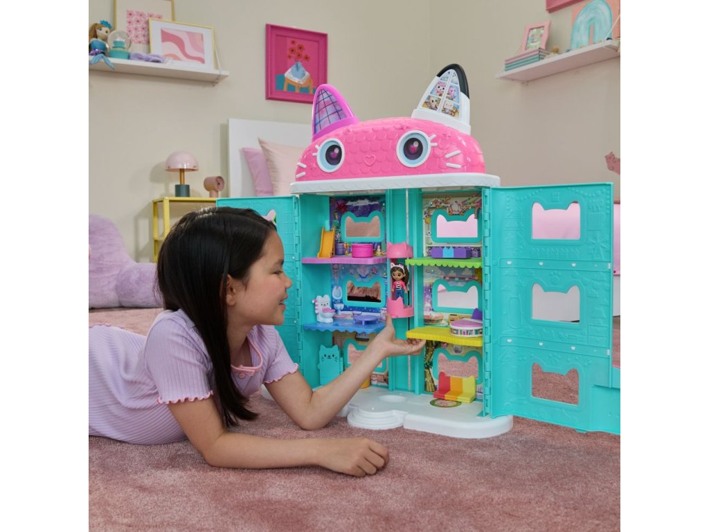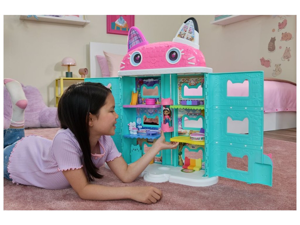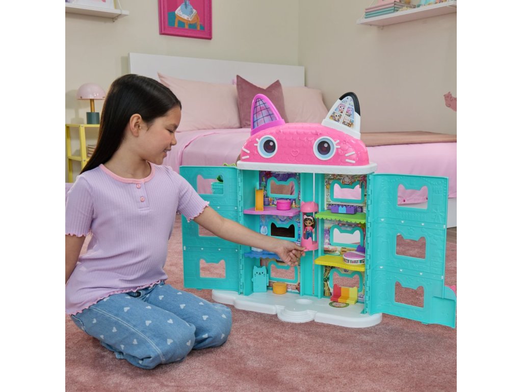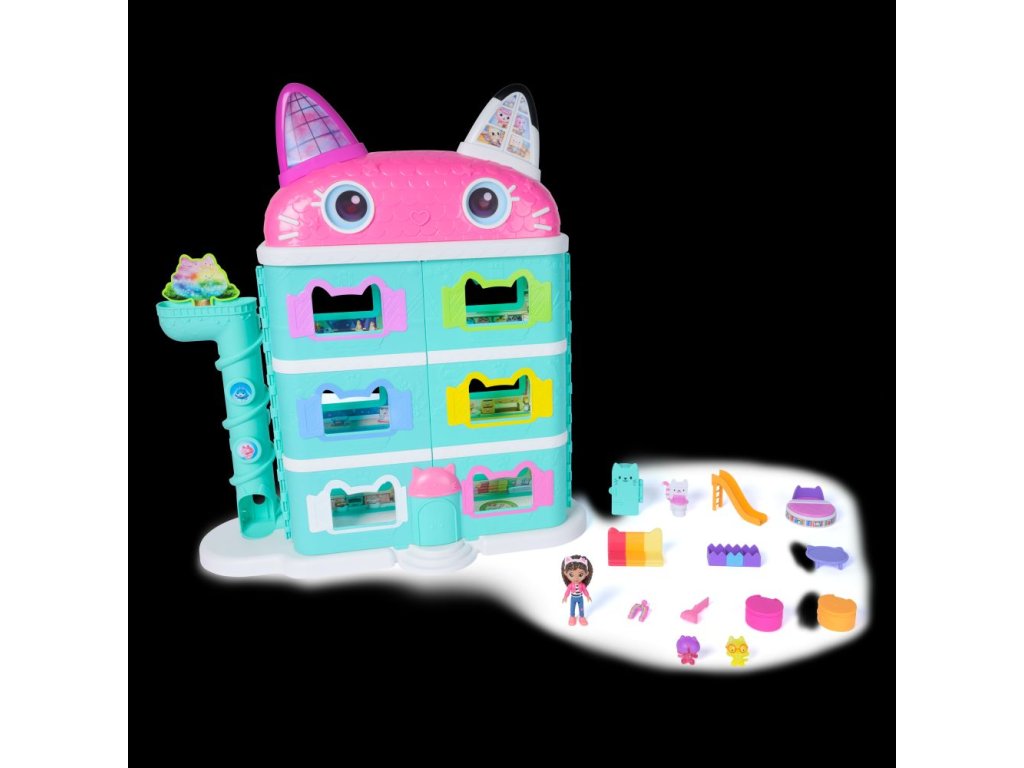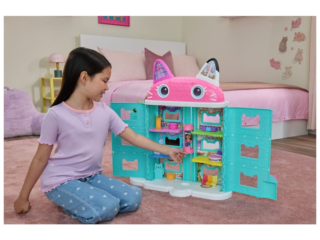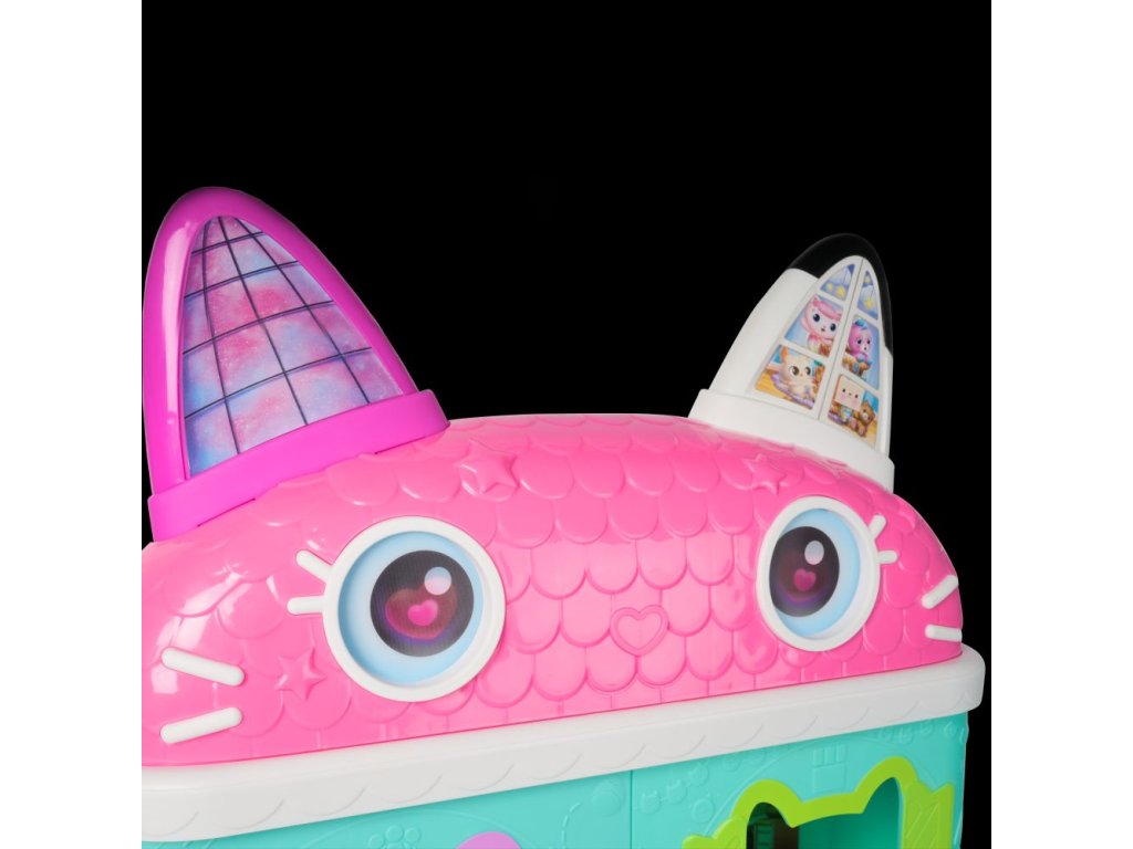 Velký dům Gabby's Dolhouse ve filmovém provedení. Oči domu jsou lentikulární a pohybují se. Dům lze doplnit o další menší hrací sady a učinit jej tak útulnějším.