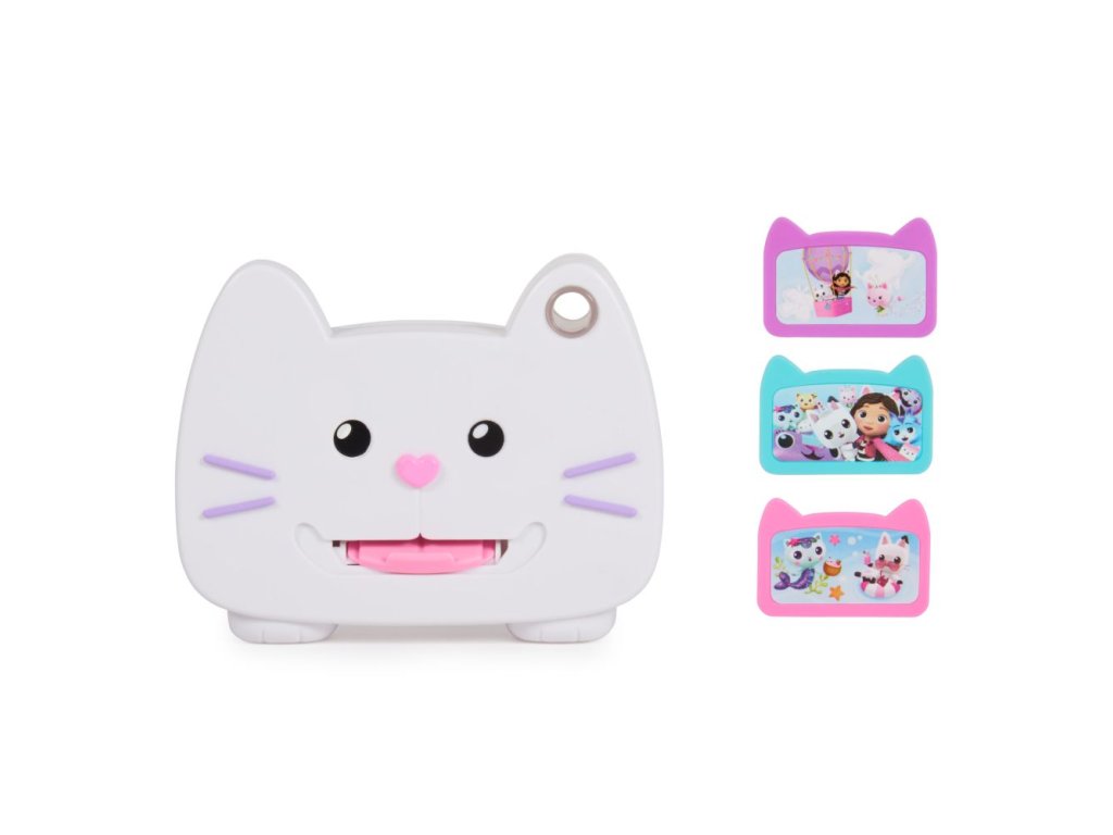 Řekněte sýr s fotoaparátem Gabby’s Dollhouse Kitty Camera. Užijte si velkou kočičí zábavu hrou na focení se svými chlupatými kamarády (figurky a hrací sady se prodávají samostatně). Tento hrací fotoaparát v životní velikosti má autentický design a styl jako v seriálu Gábinin kouzelný domek a jeho fanoušky nepochybně okouzlí. Stačí otevřít panel na zadní straně fotoaparátu a vložit tři plastové fotografie. Potom se podívejte do hledáčku, řekněte sýr a stiskněte tlačítko. Kočička mrkne a na jazyku se jí objeví fotka. Na fotoaparátu jsou také barevná tlačítka, která se dají mačkat a kterými můžete otáčet, takže poslouží jako roztomilá hračka pro neklidné ruce. A pokud chcete zažít ještě jedno překvapení, naskenujte QR kód na straně produktu a nainstalujte si bezplatnou aplikaci Gabby’s Dollhouse (dostupná pro iOS a Android). Plyšáci, panenky, figurky a hrací sady Gabby’s Dollhouse jsou ideálními hračkami pro předškoláky, kteří ve své fantazii rádi zažívají imaginární dobrodružství. Pokud chcete zažít ještě víc vzrušujících her, vyzkoušejte kuchyni „Cakey“ a troubu „Bakey with Cakey“, která svět kouzelného domku ještě více rozšíří. Přineste si domů super roztomilý fotoaparát na hraní a předstírejte, že fotíte stejně jako Gábina s Gabby’s Dollhouse Kitty Camera.
