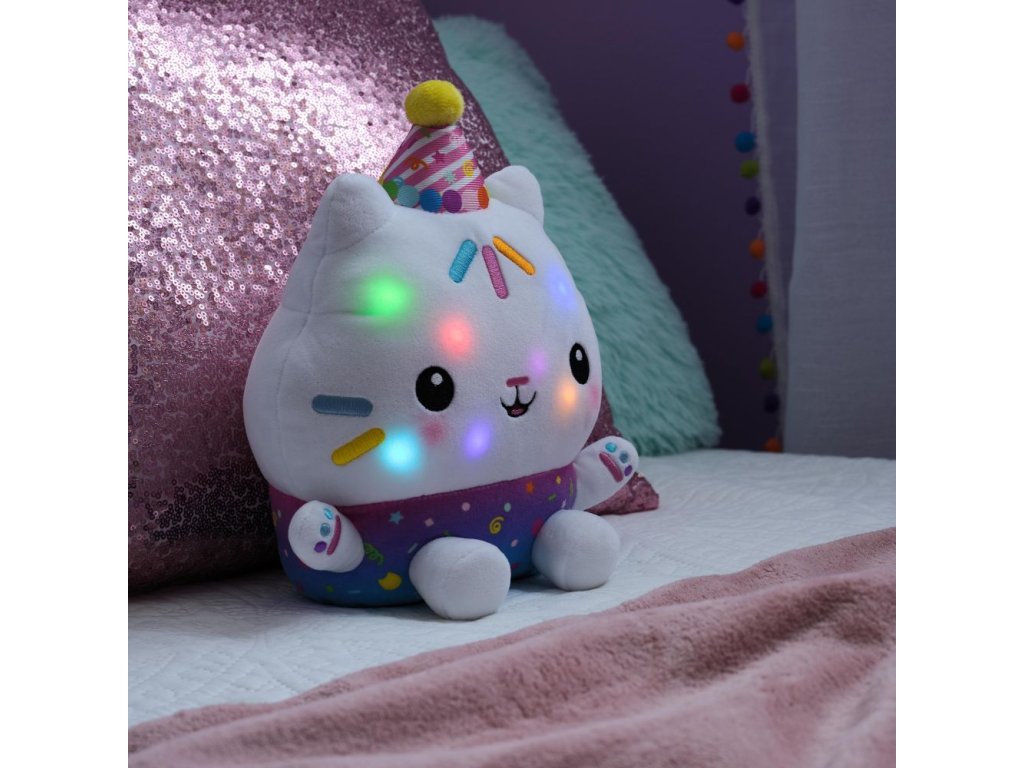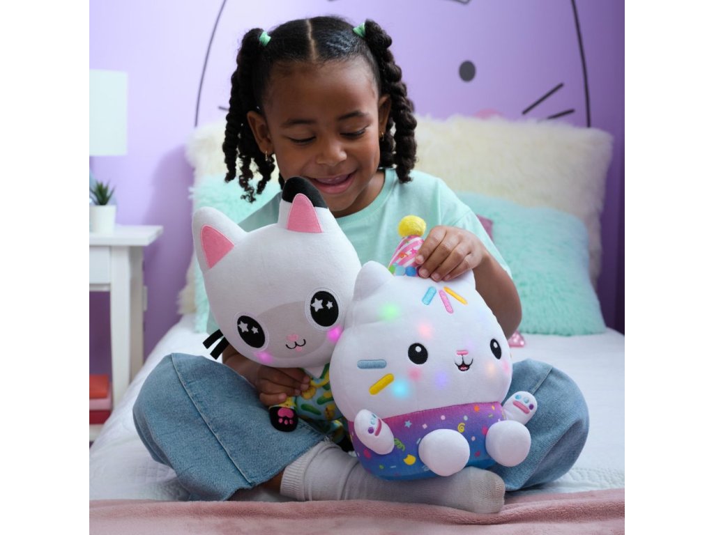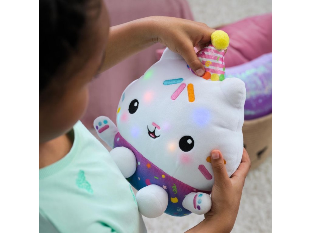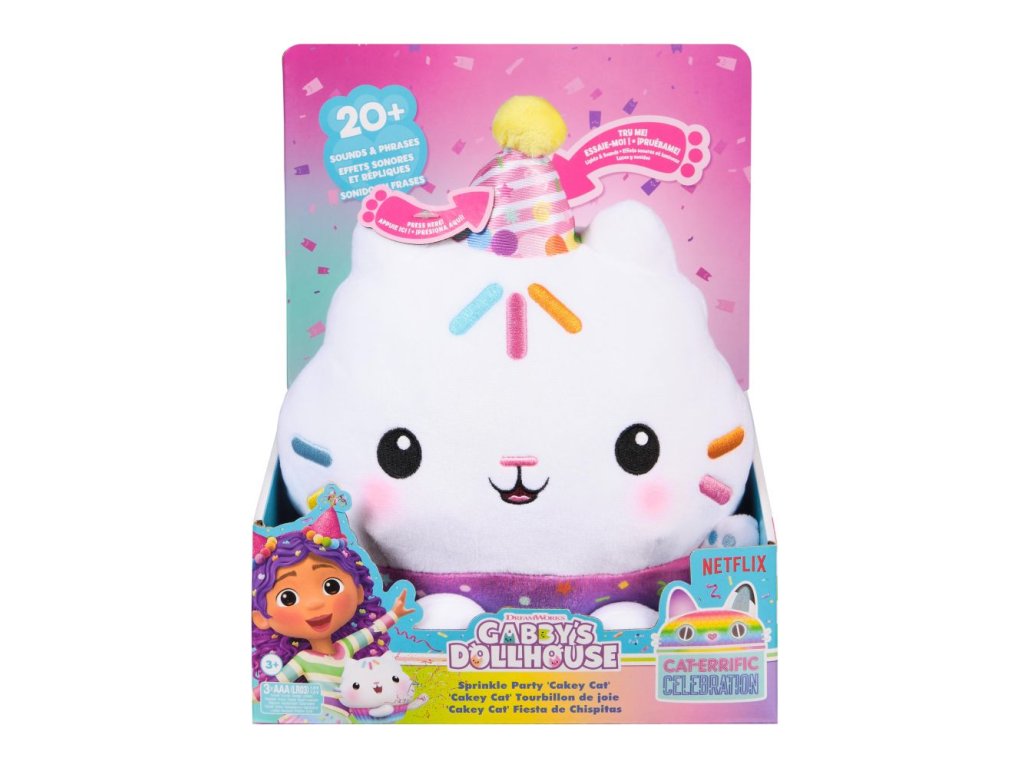S plyšovou hračkou Dortě můžete zažívat nezapomenutelná herní dobrodružství z kouzelného domku! Tato interaktivní plyšová hračka kočičky Dortě je oblečena ve svém exkluzivním oblečení s motivem oslav! Otočte Dortě vzhůru nohama, abyste vstoupili do ztřeštěného režimu, zatřeste s ním, abyste vstoupili do párty režimu, a stiskněte tlačítko na jeho party klobouku, abyste aktivovali režim mluvení! Dortě měří 25 cm, což z něj dělá perfektního společníka na zábavu během hraní i snění při spánku! Hračky Gábinin kouzelný domek pro dívky a chlapce jsou skvělými dárky pro všechny děti, které jsou fanoušky tohoto seriálového hitu od Netflixu a rádi si hrají s domečky pro panenky. Zajistěte jim nezapomenutelný zážitek se světem roztomilých figurek, doplňků a nábytku do kouzelného domku, které mohou sbírat a libovolně skládat! Postavte si vlastní svět se základními stavebnicemi, jako je kuchyňka na hraní nebo hudební místnost, a spoustou sběratelských předmětů, jako je úžasná výletní loď, bazén pro mořské panny nebo zbrusu nová souprava Párty pokoj – podkroví kouzelného domku s krytým skateparkem a roztomiloučkými balkónky s mini antistresovými hračkami, které poskytují uspokojivou senzorickou hru a lze je bezproblémově zkombinovat s oběma verzemi kouzelného domku!
