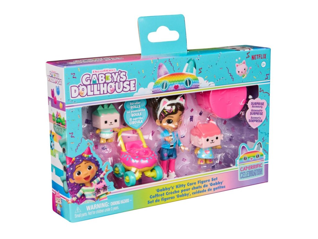 Vstupte do světa Gábinina kouzelného domku se soupravou figurek Jesličky! V této sadě figurek najdete Gábinu, kočičku Krabičku, miminko Krabička Beníček a jeho roztomiloučký dětský kočárek ve tvaru donutu! Každá figurka obsahuje autentické seriálu věrné detaily! Rozbalte si svůj vlastní zásilku z kouzelného domku a odhalte hračku s překvapení v podobě rozkošného medvídka! Pro další překvapení naskenujte QR kód, který je uvnitř zásilky z kouzelného domku, a odemkněte si speciální odměnu v bezplatné aplikaci Gábinin kouzelný domek (k dispozici pro iOS a Android). Hračky Gábinin kouzelný domek pro dívky a chlapce jsou skvělými dárky pro všechny děti, které jsou fanoušky tohoto seriálového hitu od Netflixu a rádi si hrají s domečky pro panenky. Zajistěte jim nezapomenutelný zážitek se světem roztomilých figurek, doplňků a nábytku do kouzelného domku, které mohou sbírat a libovolně skládat! Postavte si vlastní svět se základními stavebnicemi, jako je kuchyňka na hraní nebo hudební místnost, a spoustou sběratelských předmětů, jako je úžasná výletní loď, bazén pro mořské panny nebo zbrusu nová souprava Párty pokoj – podkroví kouzelného domku s krytým skateparkem a roztomiloučkými balkónky s mini antistresovými hračkami, které poskytují uspokojivou senzorickou hru a lze je bezproblémově zkombinovat s oběma verzemi kouzelného domku!