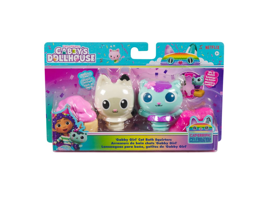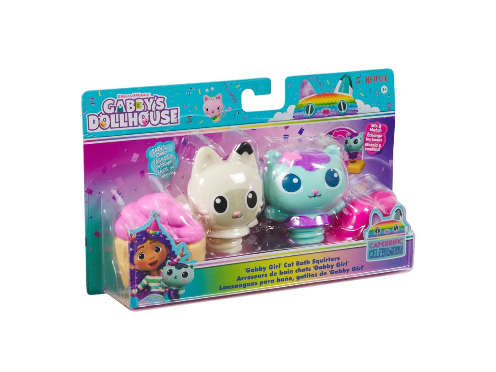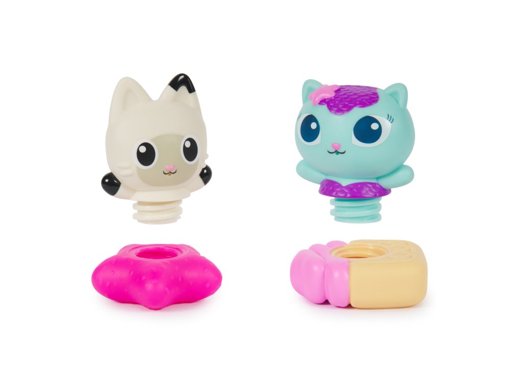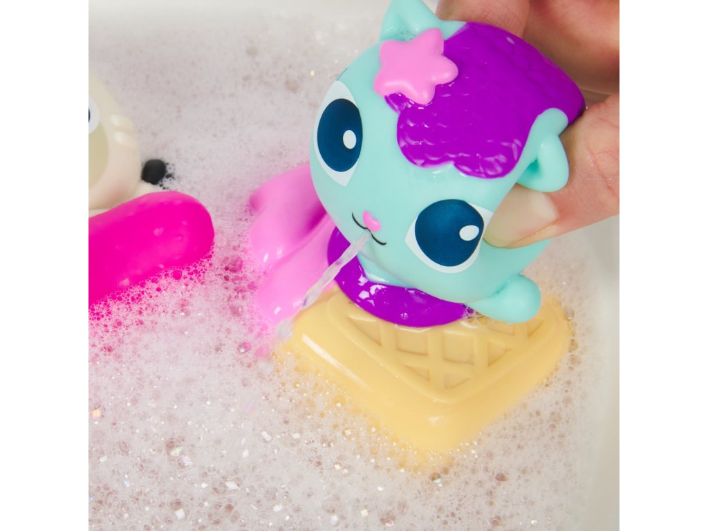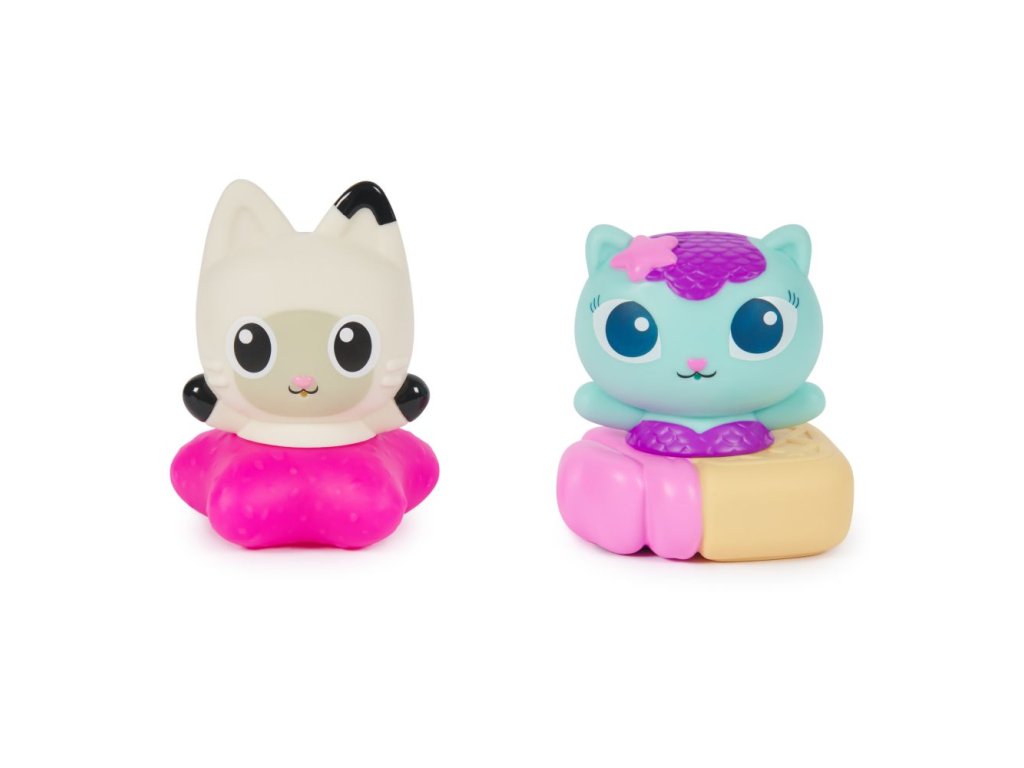 Zabavte děti při koupání koupelovou soupravou kočičích stříkacích hraček z Gábinina kouzelného domku. Tato nádherná kolekce obsahuje koupelové hračky Rybočky a Pandy Ťapky, které stříkají a plavou ve vaně ve vzpřímené poloze. Když Rybočku nebo Pandyho stisknete, začnou stříkat vodu, a dokonce jim lze vyměnit plováky. Rozměr balení: 22,9x13,3x5. Věk 3+