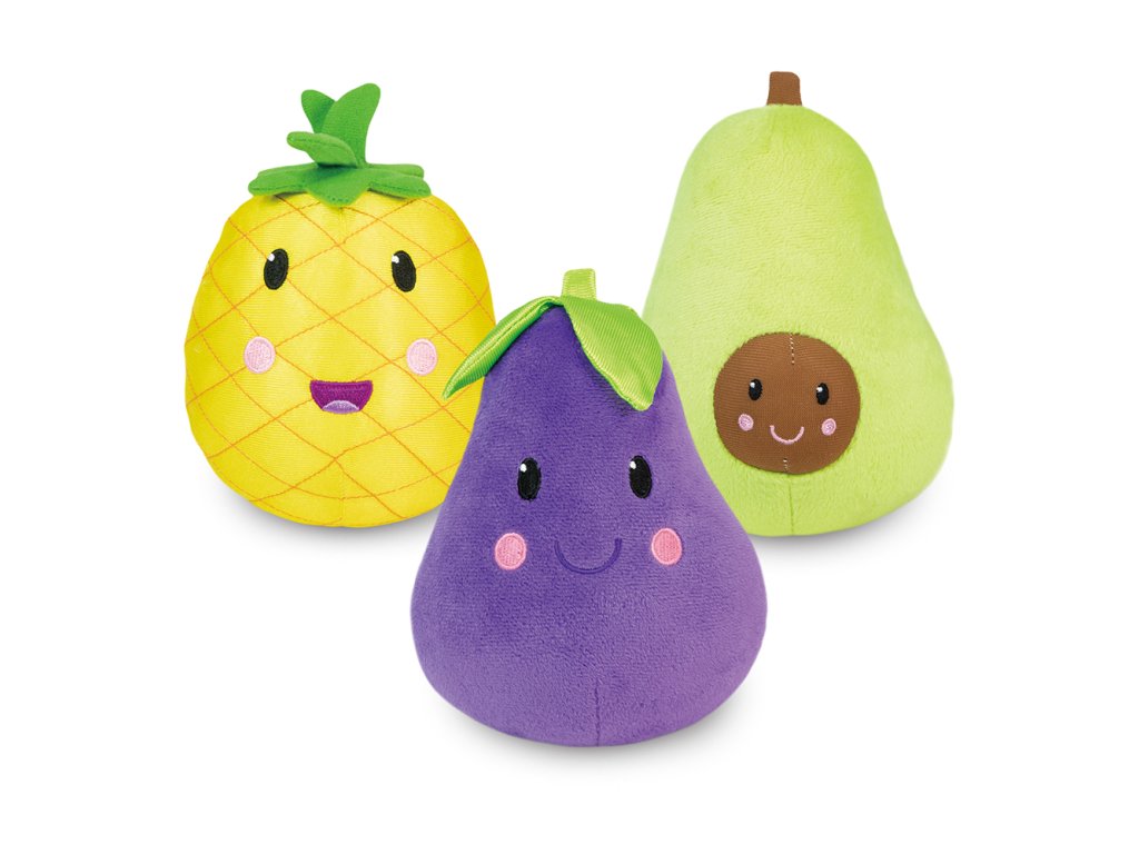 Lilek, avokádo a ananas poskytují zábavný úvod do ovoce a zeleniny pro malé dítě.