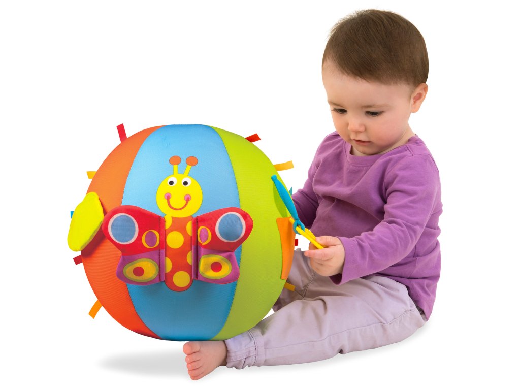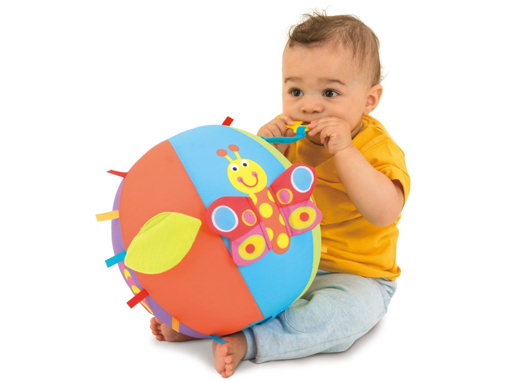 Míč je měkký, lehký a je ideální pro první zábavné míčové hry.