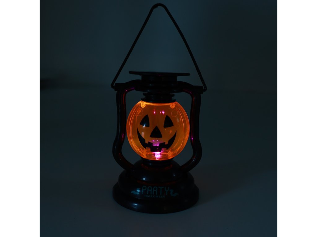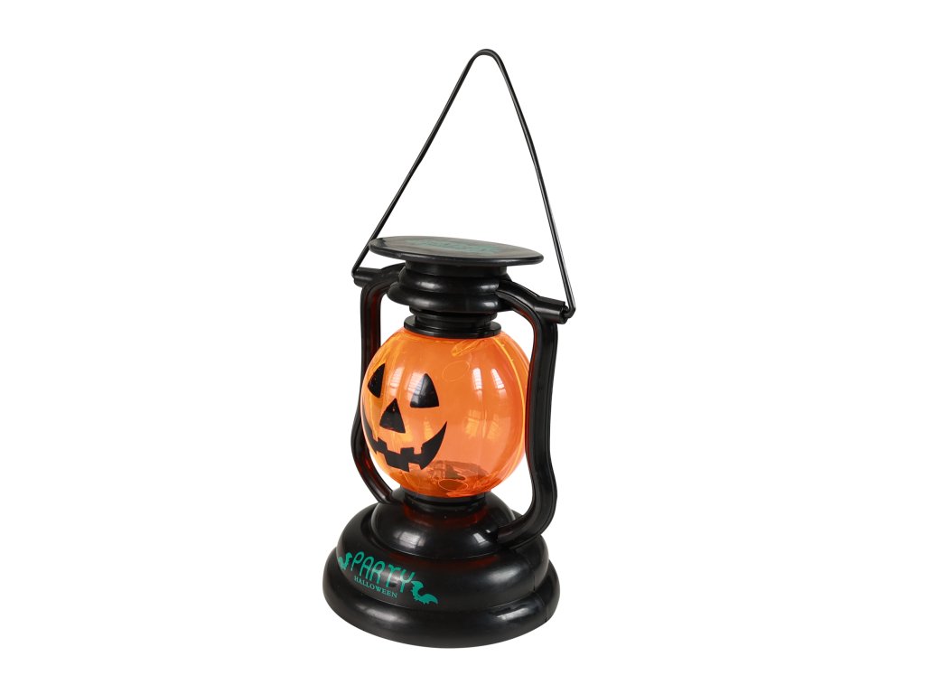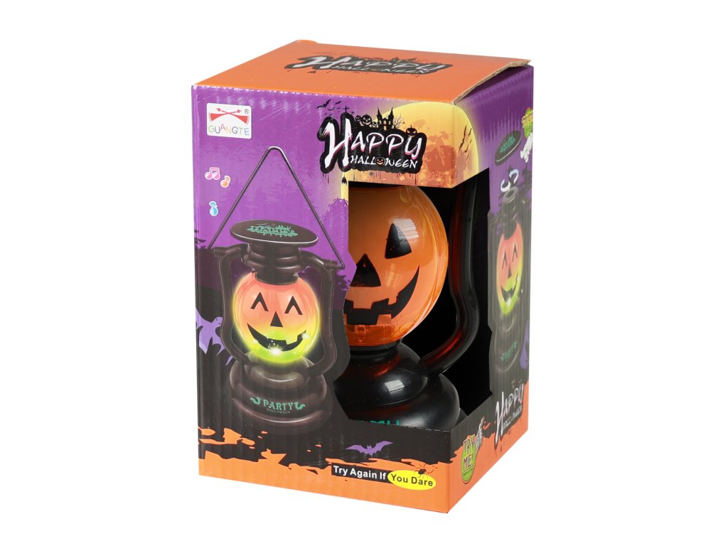Halloweenské svítidlo na tu pravou Halloween párty! Plastová lucerna s dýní je funkční na 2 baterie typu AA (baterie nejsou součástí balení). Stačí jen přepnout přepínač ve spodní části lucerny. Lampička bliká a vydává strašidelné zvuky.