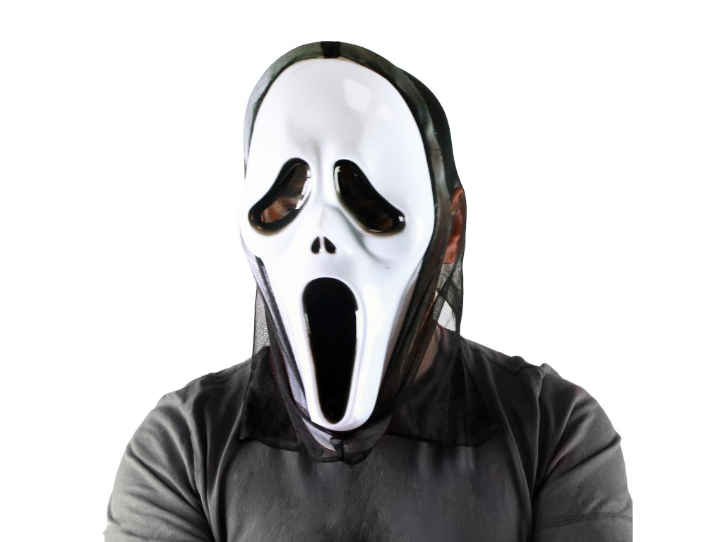 Parádní maska ve stylu ducha s šátkem je perfektním doplňkem na halloweenskou párty nebo karneval. Vystraš své kamarády touto hrozivou maskou a zažij spoustu legrace!
