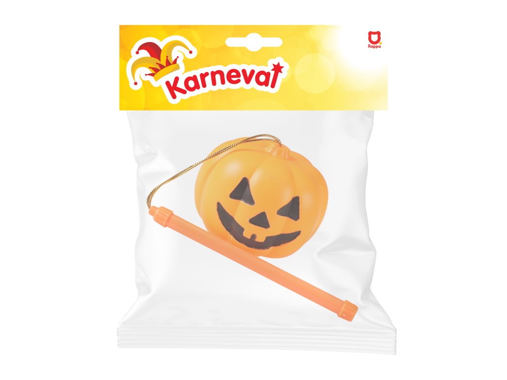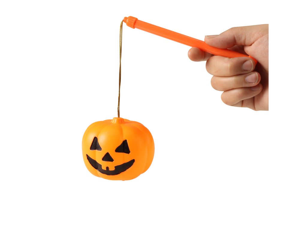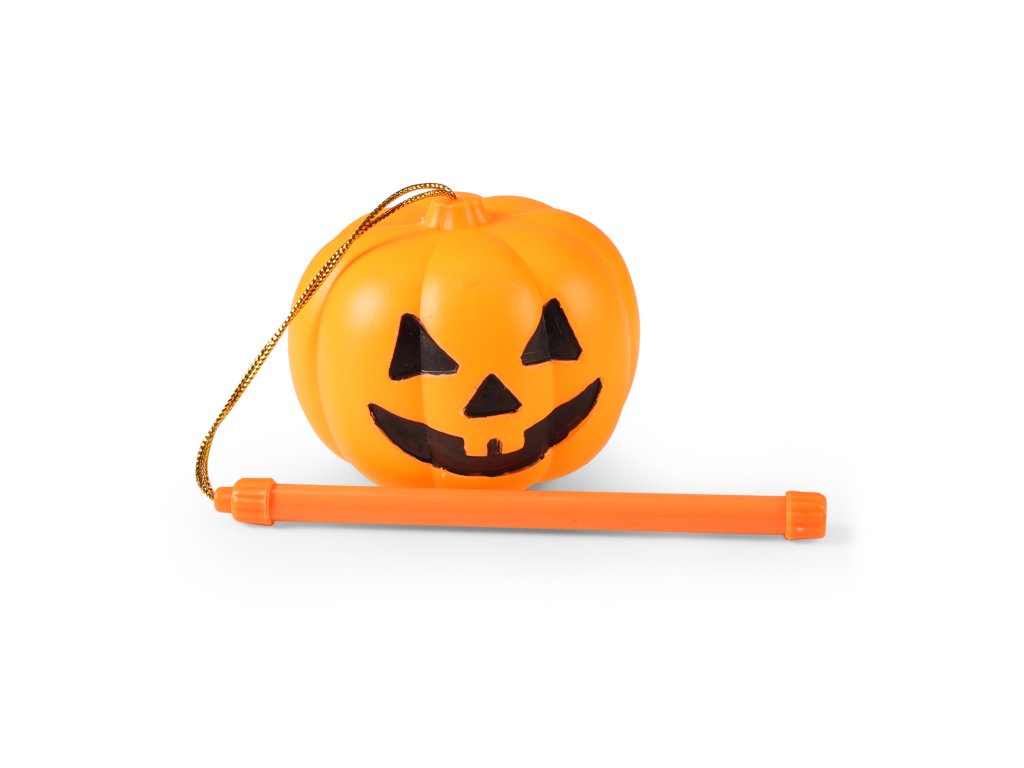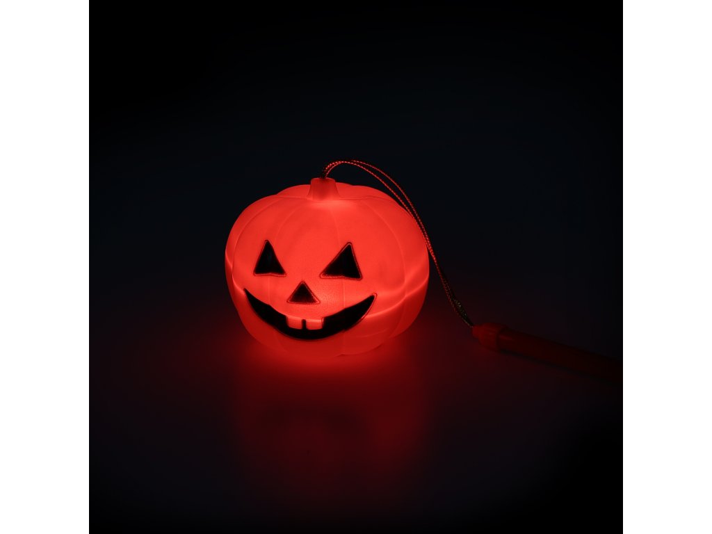Halloweenské svítidlo na tu pravou Halloween párty! Plastová dýně s rukojetí již obsahuje baterie. Stačí jen přepnout přepínač ve spodní části dýně. Zažij tu pravou halloweenskou atmosféru! Tato hračka je pouze se světlem! Velikost dýně cca 10 cm.