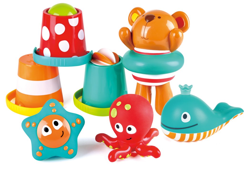 Čas koupele prostě dostal více zábavy! Doba koupele je jednou z nejhravějších částí dne. Naplňte kbelíky vodou a bublinkami nebo noste kamarády na koupání. Oblečený v rozkošném pruhovaném kompletu a zajištěný zářivě modrým plaveckým kroužkem. Tento malý medvídek stačí natáhnout a je připraven plavat kolem vany! Tato veselá velryba prostě miluje vyfukování bublin! Naplňte jeho hubici 3-5 kapkami perličkové koupele nebo tekutého mýdla a ponořte ho do vany. Přísavka na hvězdici umožňuje její přilepení k povrchu. Zatímco vy jemně namydlíte své ratolesti, nechte je přilepit hvězdice na vanu nebo jakýkoli jiný povrch. Balení: 11x24x43cm. Věk: 18m+