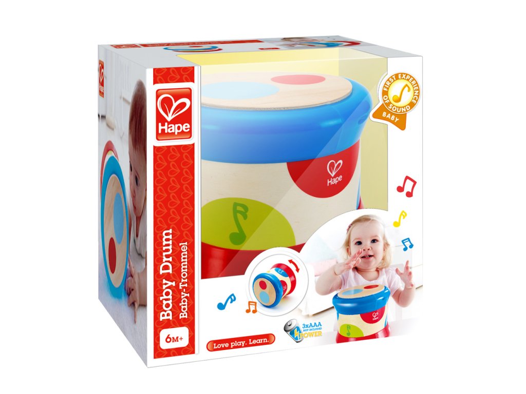 S interaktivním bubínkem HAPE je zábava zaručena. Bubínek hraje zábavné melodické zvuky a stimuluje dětskou fantazii a smysl pro rytmus. Bubínek lze také válet a podporuje tak vývoj koordinace pohybů. Poutavé barevné provedení. Vyrobeno z kvalitního a odolného materiálu. Rozměr: 15 x 15 x 12,7 cm. Rozměr balení: 18 x 18 x 16 cm. Baterie: 3xAA (nejsou součástí balení). Věk: 6m+. Video: https://www.youtube.com/watch?v=JOoWiZf-270