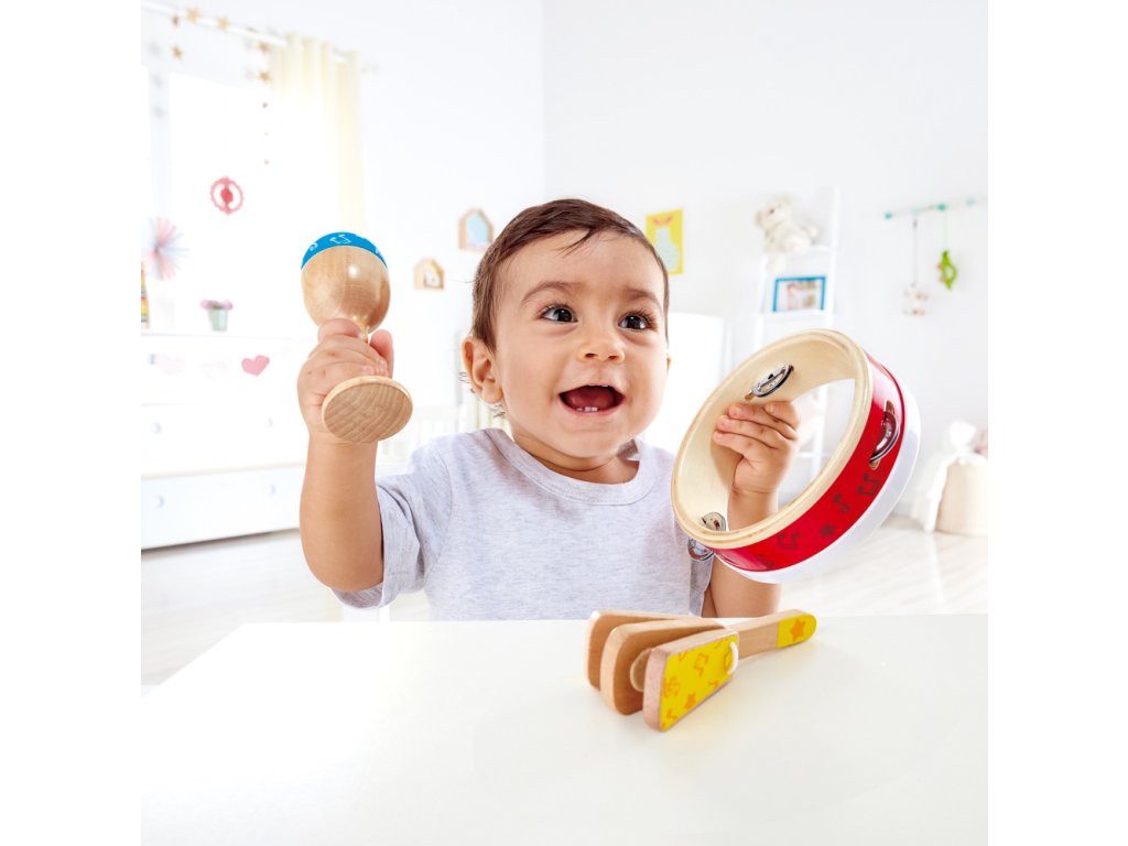 Malí hudebníci budou nadšeni! Třeste, klepejte. Každá píseň bude znít úplně jinak. Vyrobeno s ohledem na malé dětské ručičky. Hračka podporuje dětskou fantazii, smysl pro rytmus, podporuje zručnost a koordinaci rukou a očí. Poutavé barevné provedení. Vyrobeno z kvalitního a odolného materiálu. Set obsahuje 3 hudební nástroje. Věk: 12m+. Rozměr balení: 28 x 18 x 6 cm.