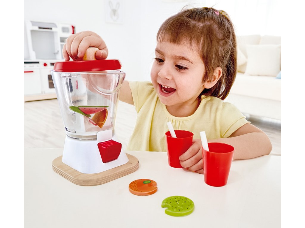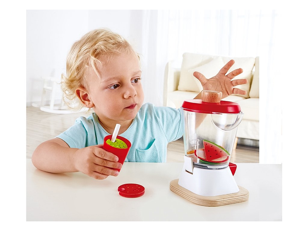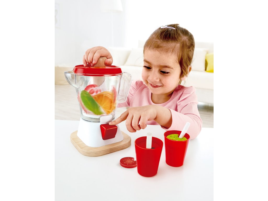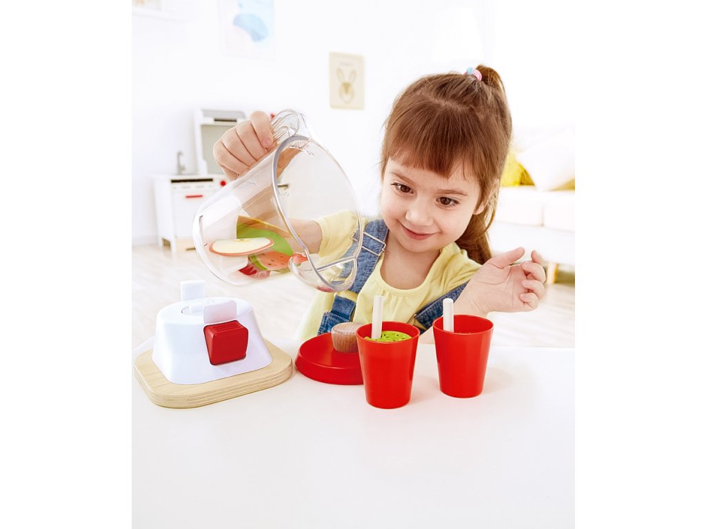 Rozmixovat ovoce nebo zeleninu a vytvořit si tak chutný nápoj nikdy nebylo snadnější. Pomocí tohoto Smoothie makeru je to pro malé kuchaře a kuchařky hračka. Součástí jsou dva kelímky na nápoj. Výborný pomocník pro rozvíjení dětské představivosti při hře. Vyrobeno z kvalitního a odolného materiálu. Věk: 3+. Rozměr balení: 20 x 24 x 13 cm.