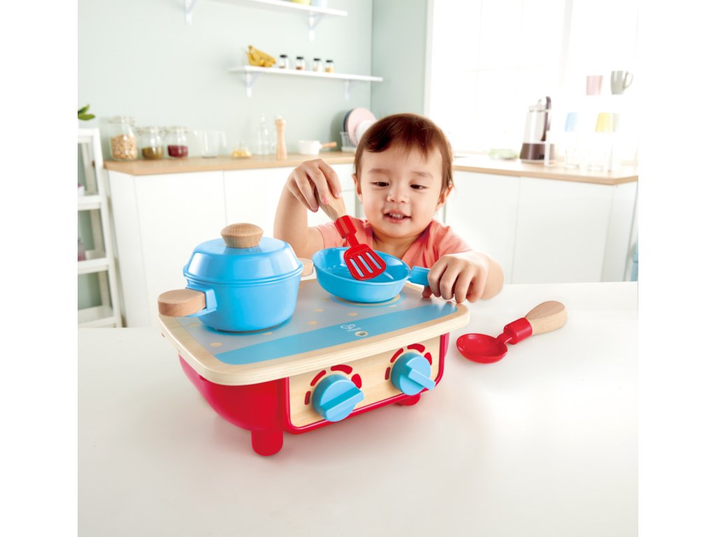 Připravte chutné jídlo pro vaši rodinu a přátele. Tento zábavný dvouvařič má 2 otočné knoflíky, které po otočení cvaknou. K vaření využijte nádobí, které je součástí sady – hrnec s pokličkou, pánvičku, lžičku a špachtli. Jakmile bude vaření dokončeno, uložte hrnec a pánev do úložného prostoru pod varnou deskou. Rozměr balení: 31 x 24 x 12 cm. Věk: 18m+. Video: https://www.youtube.com/watch?v=Tp4roIUERM4