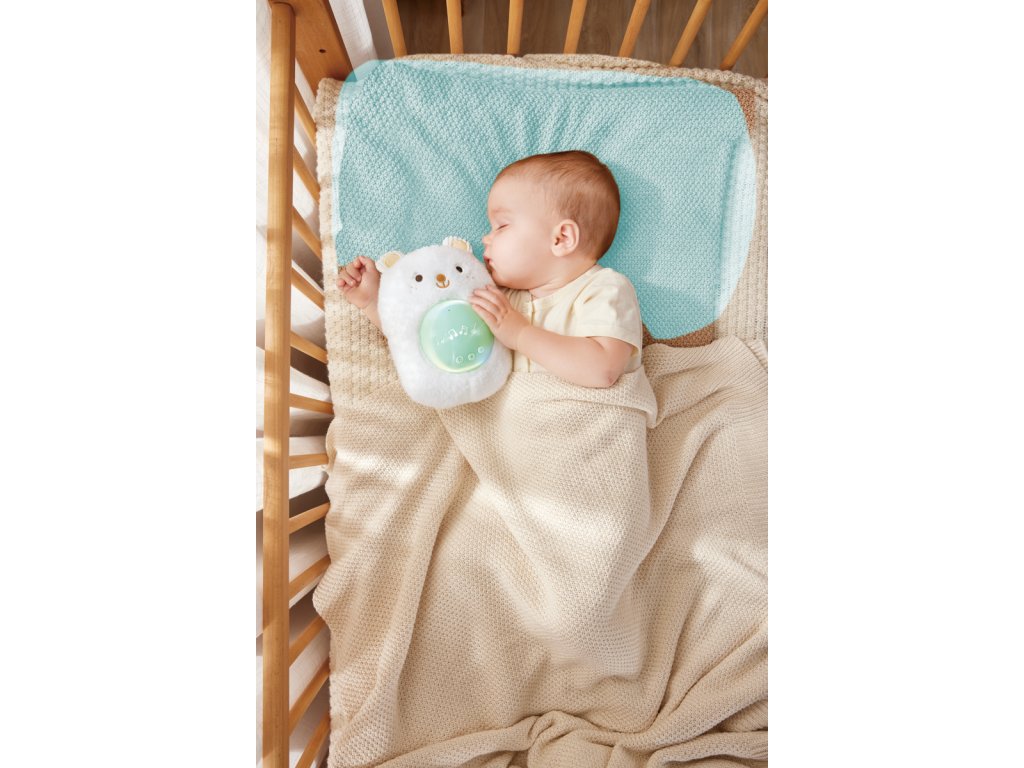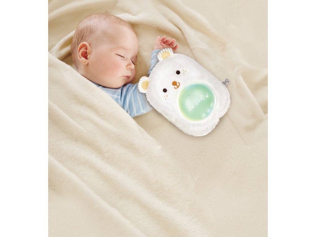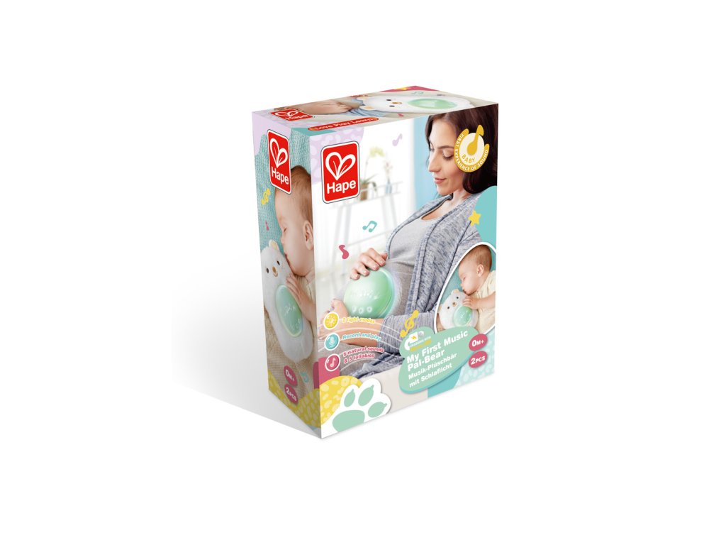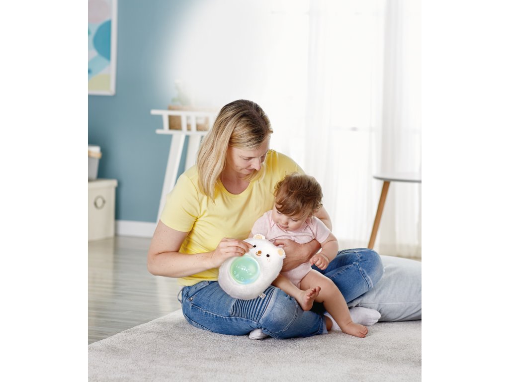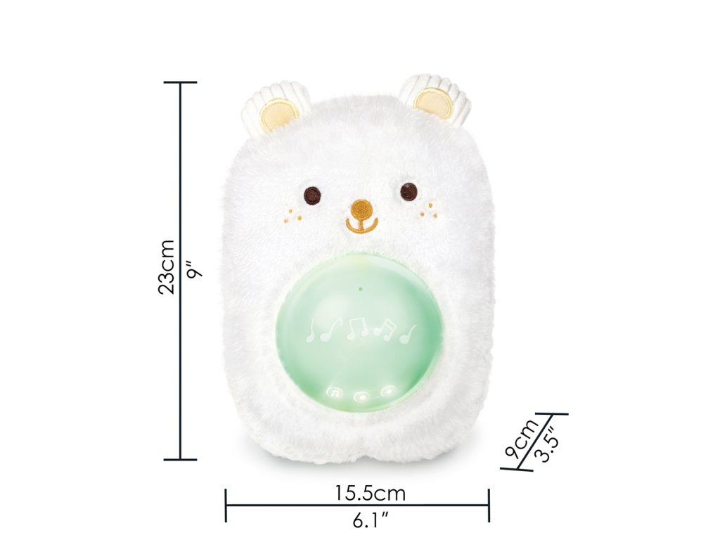Usínejte s tímto nádherným plyšovým medvídkem pro noční ukolébavku. Jemně zářící světlo, přirozené zvukové efekty a uklidňující ukolébavky pomohou těm nejmenším klidně usnout. Můžete dokonce nahrát 120 sekund svého vlastního hlasu a přehrát ho! Nastávající maminky mohou pomocí hudebního boxu přehrávat uklidňující zvuky a melodie svému bříšku, takže když miminko přijde, rozpoznají a budou se k nim vztahovat tytéž zvuky a melodie! Balení: 24x9x18cm. Věk: 0+