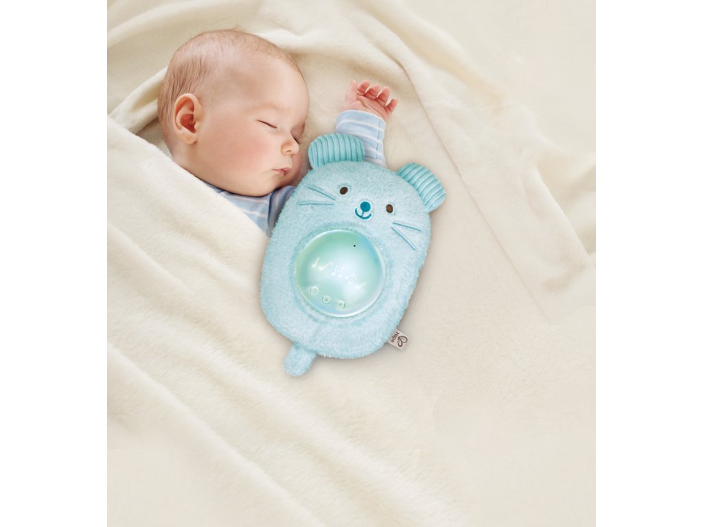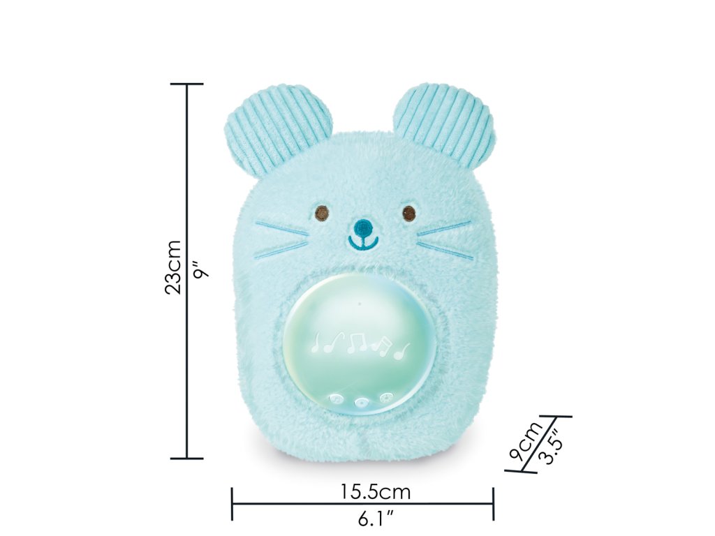 Usínejte s touto úžasnou plyšovou myší s nočním světlem ukolébavky. Jemně zářící světlo, přirozené zvukové efekty a uklidňující ukolébavky pomohou těm nejmenším klidně usnout. Můžete dokonce nahrát 120 sekund svého vlastního hlasu a přehrát ho! Nastávající maminky mohou pomocí hudebního boxu přehrávat uklidňující zvuky a melodie svému bříšku, takže když miminko přijde, rozpoznají a budou se k nim vztahovat tytéž zvuky a melodie! Balení: 24x9x18cm. Věk: 0+