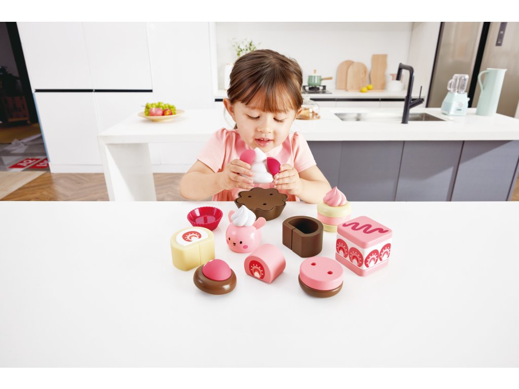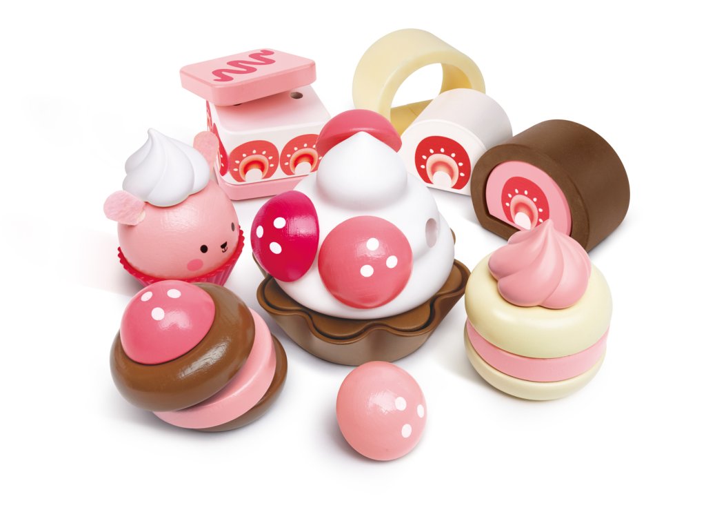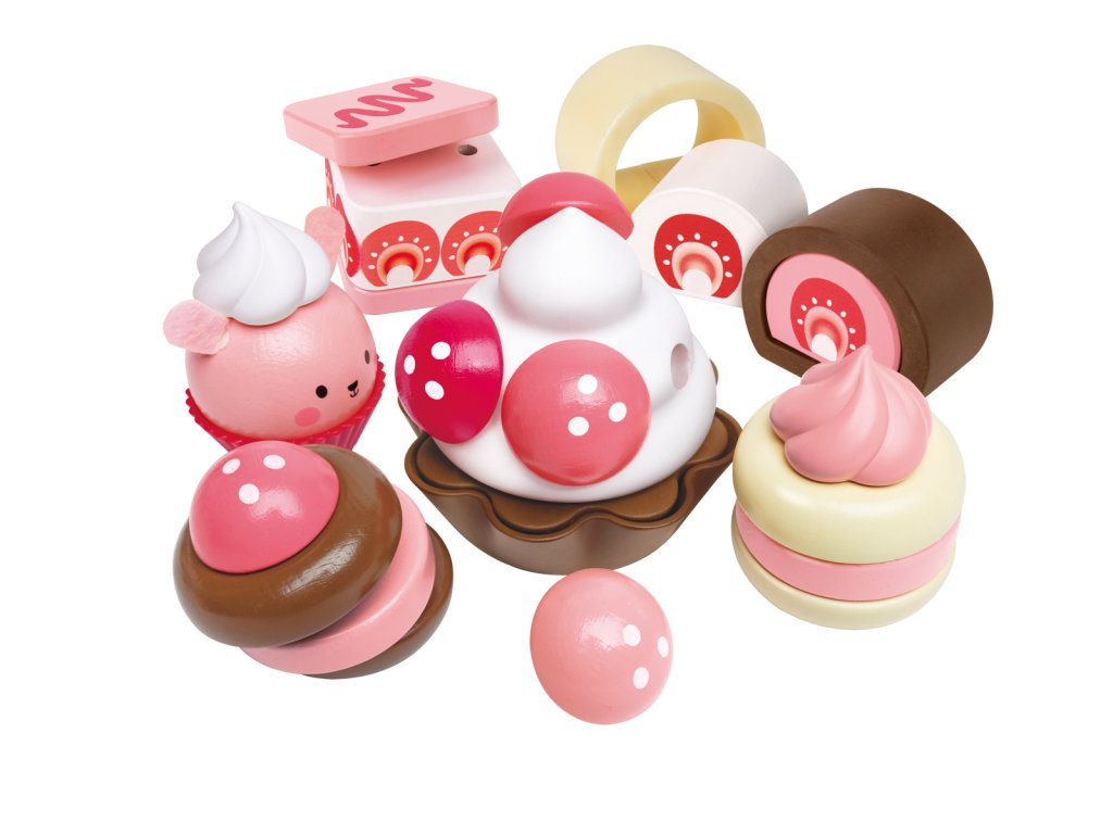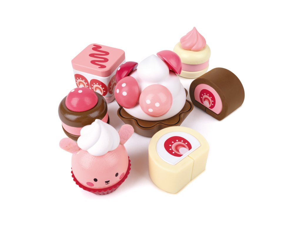 Pozvěte své přátele, rodinu nebo jiné hračky na odpolední čaj a naservírujte jim tyto lahodně vypadající jahodové dorty! Obsahuje lákavou nabídku švýcarských rohlíků, krémových dortů, cupcaků a dalších! Balení: 7x24x30cm. Věk: 2+