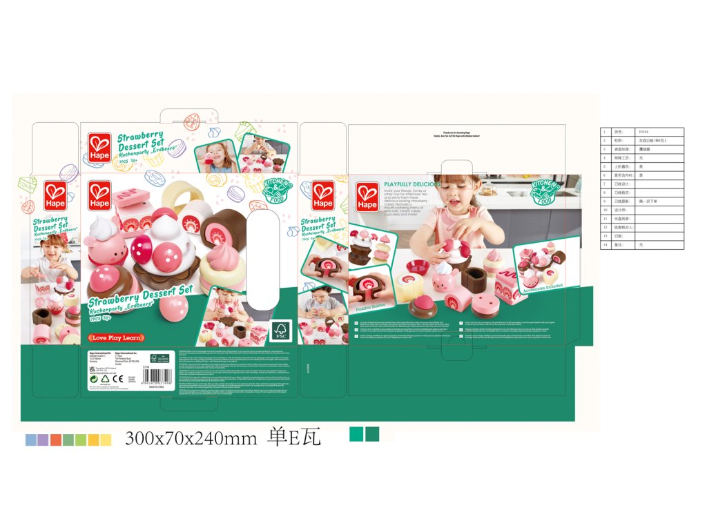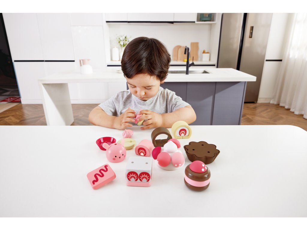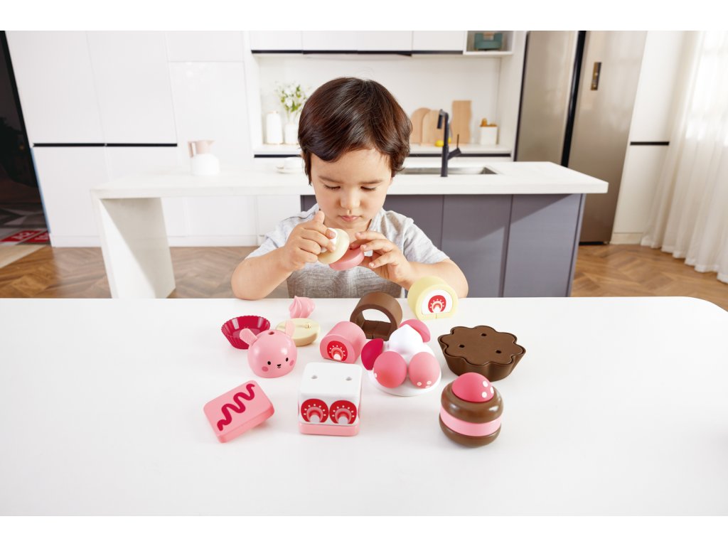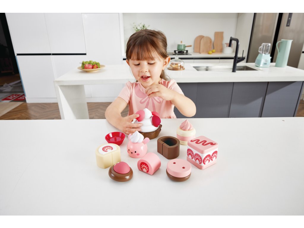 Pozvěte své přátele, rodinu nebo jiné hračky na odpolední čaj a naservírujte jim tyto lahodně vypadající jahodové dorty! Obsahuje lákavou nabídku švýcarských rohlíků, krémových dortů, cupcaků a dalších! Balení: 7x24x30cm. Věk: 2+