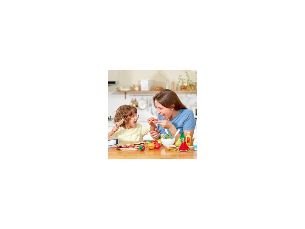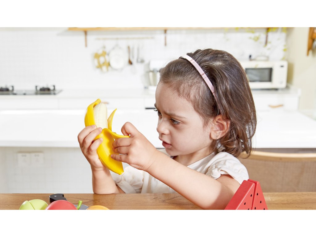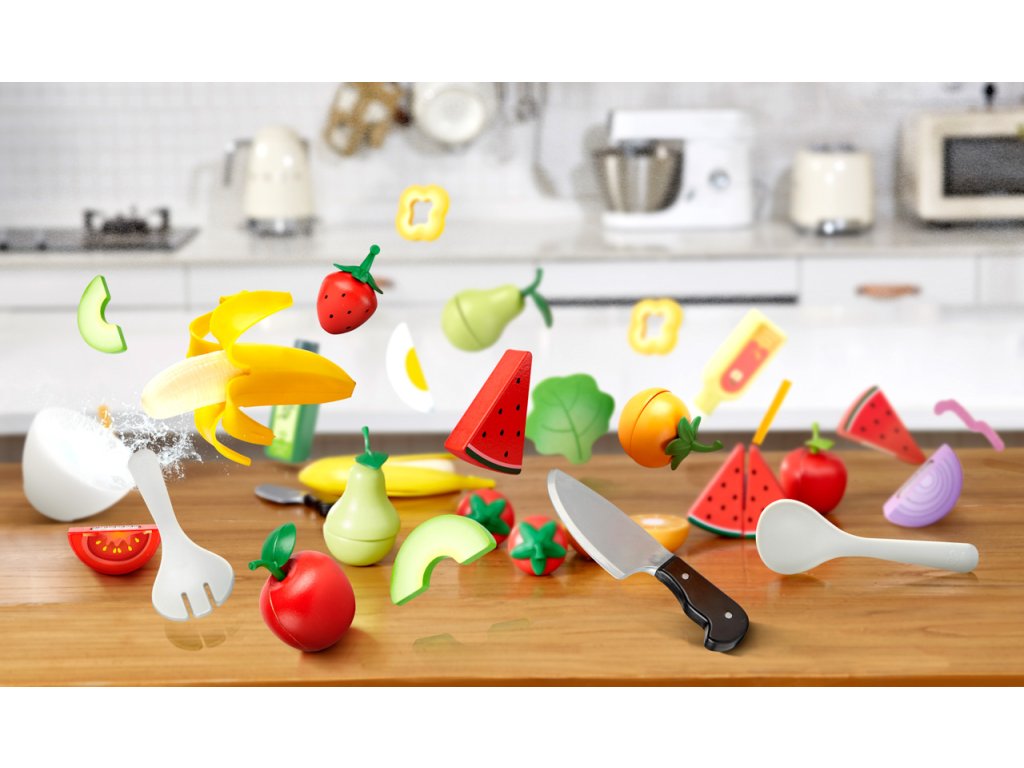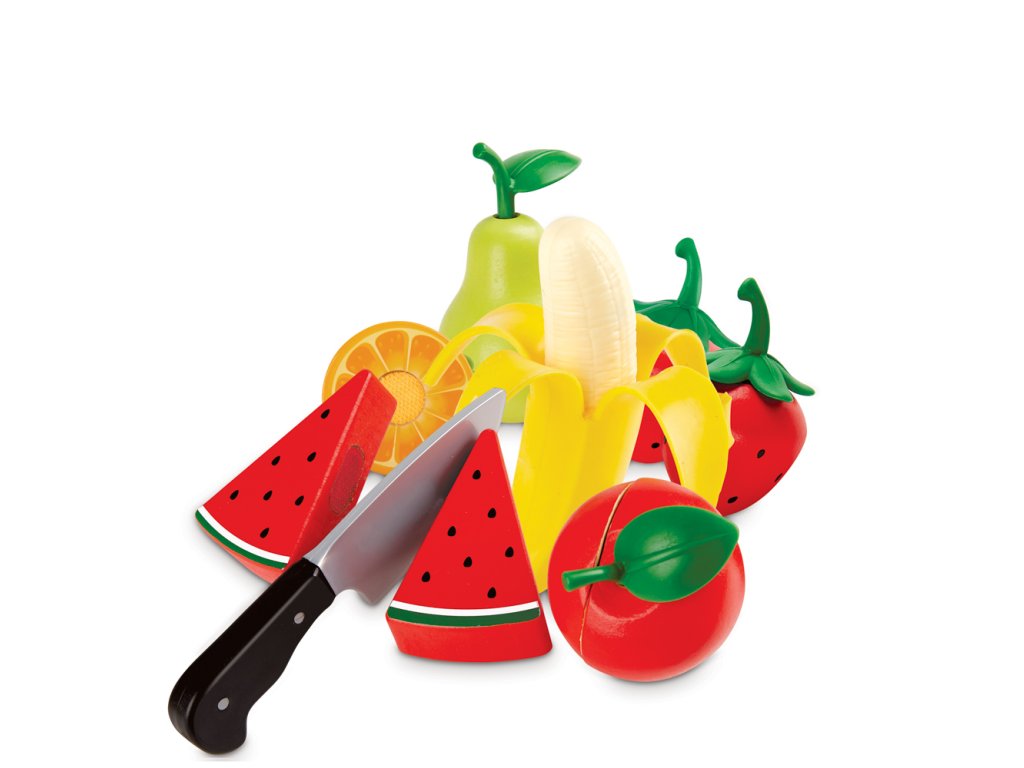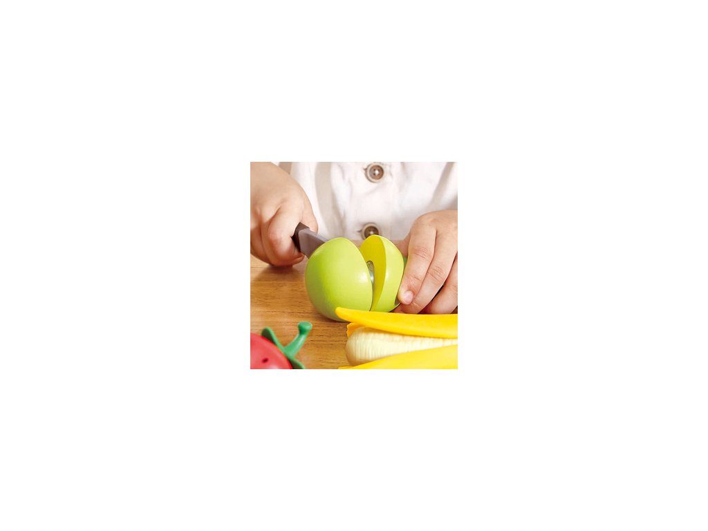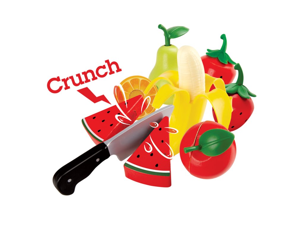 Tato nádherná hrací sada HAPE pomáhá dětem seznámit se s ovocem a inspiruje je k rozvoji zdravých stravovacích návyků. Povzbuďte v dětech zvědavost a nechte je rozvíjet jejich představivost, jazykové a sociální dovednosti hraním s touto nejkvalitnější realistickou sadou ovoce! Zkombinujte tuto sadu s dalšími potravinovými sadami a vytvořte zábavné hody. Hračka pomáhá s rozvojem jemné motoriky a koordinace ruka-oko. Pásky na suchý zip na plodech vydávají při krájení křupavý zvuk a banánová slupka je vyrobena z měkkého silikonu, takže ji mohou malé ručičky snadno loupat! Sada zdravého ovoce obsahuje dvě jahody, hrušku, pomeranč, jablko, dva kousky melounu, banán a realistický dětský hrací nůž. Rozměr balení: 25,5 x 6 x 24,5 cm. Věk: 3+