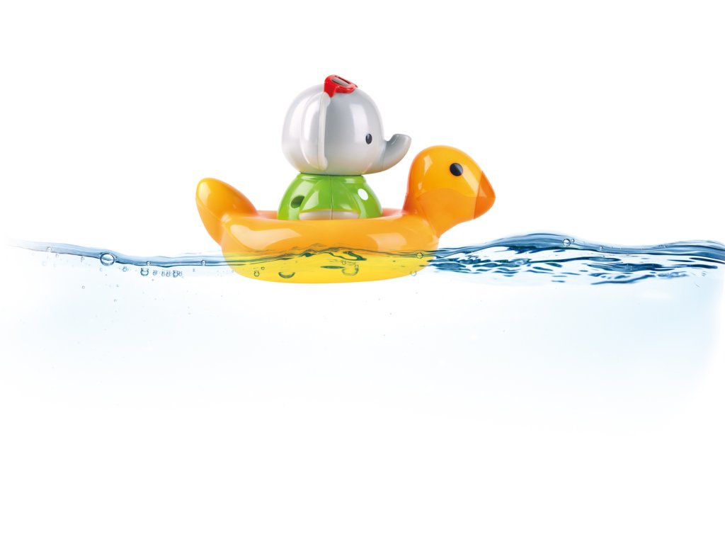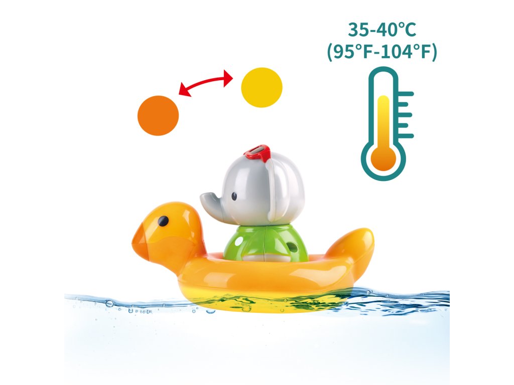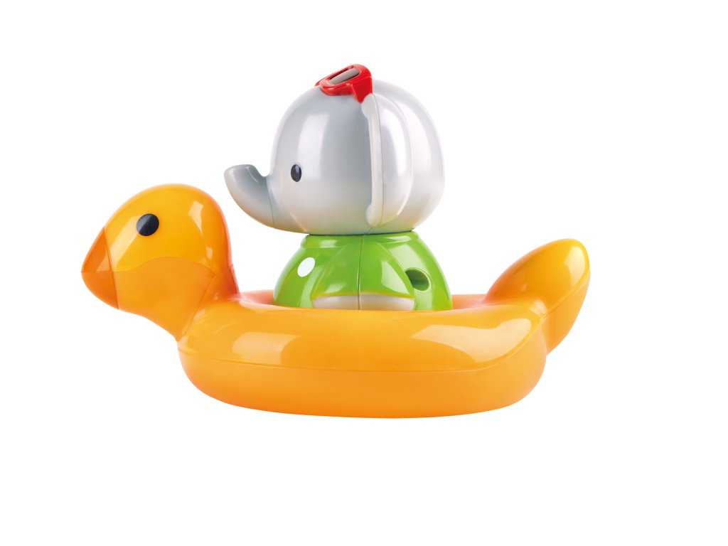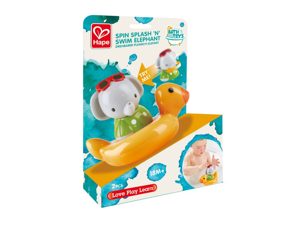 Tento bláznivý točící se slon je dokonalým parťákem do koupele! Jednoduše ho natáhněte, vložte do jeho plastového kachního kroužku a sledujte, jak se radostí točí! Pokud je voda teplejší než 35?, kruh změní barvu! Balení: 10x24x16cm. Věk: 18m+