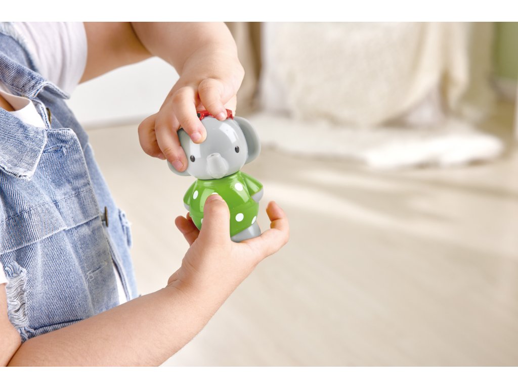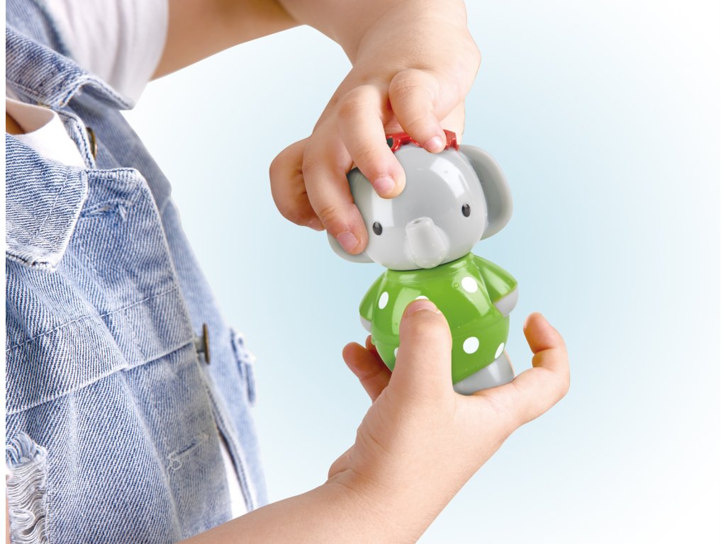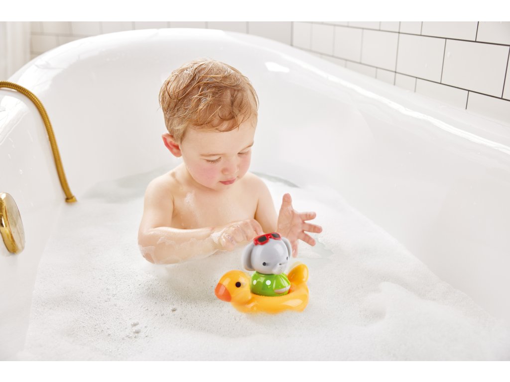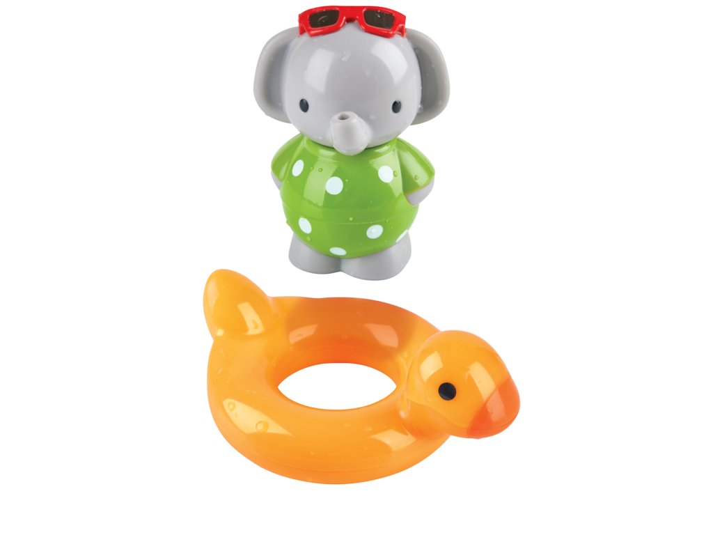 Tento bláznivý točící se slon je dokonalým parťákem do koupele! Jednoduše ho natáhněte, vložte do jeho plastového kachního kroužku a sledujte, jak se radostí točí! Pokud je voda teplejší než 35?, kruh změní barvu! Balení: 10x24x16cm. Věk: 18m+