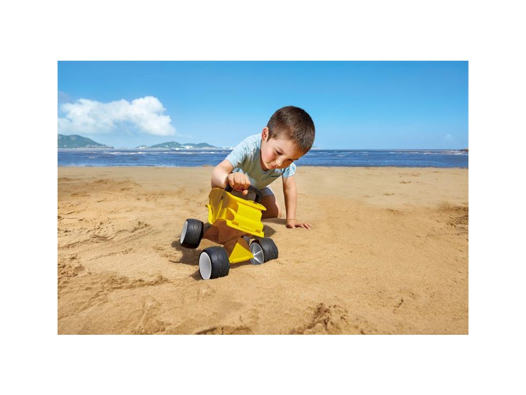Jízda nádhernou žlutou Buginou je sen každého kluka. Projeďte se s buginou na písku. Řízení je snadné, kolečka ihned reagují na každou nerovnost. Vyrobeno z kvalitního a odolného materiálu. Věk: 12m+. Rozměr: 20,3 x 14,8 x 17,4 cm.