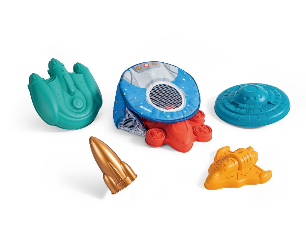 Šestidílná sada na písek včetně síťovaného obalu, díky kterému můžete mít vždy všechny bábovky pohromadě. Vydejte se díky sadě na vodní a písečné dobrodružství mimo tento svět se skvělými vesmírnými loděmi. Prozkoumejte, hrajte a utvářejte svou představivost do nekonečna a ještě dál. Rozměr balení: 29x29x12 cm. Věk 18m+