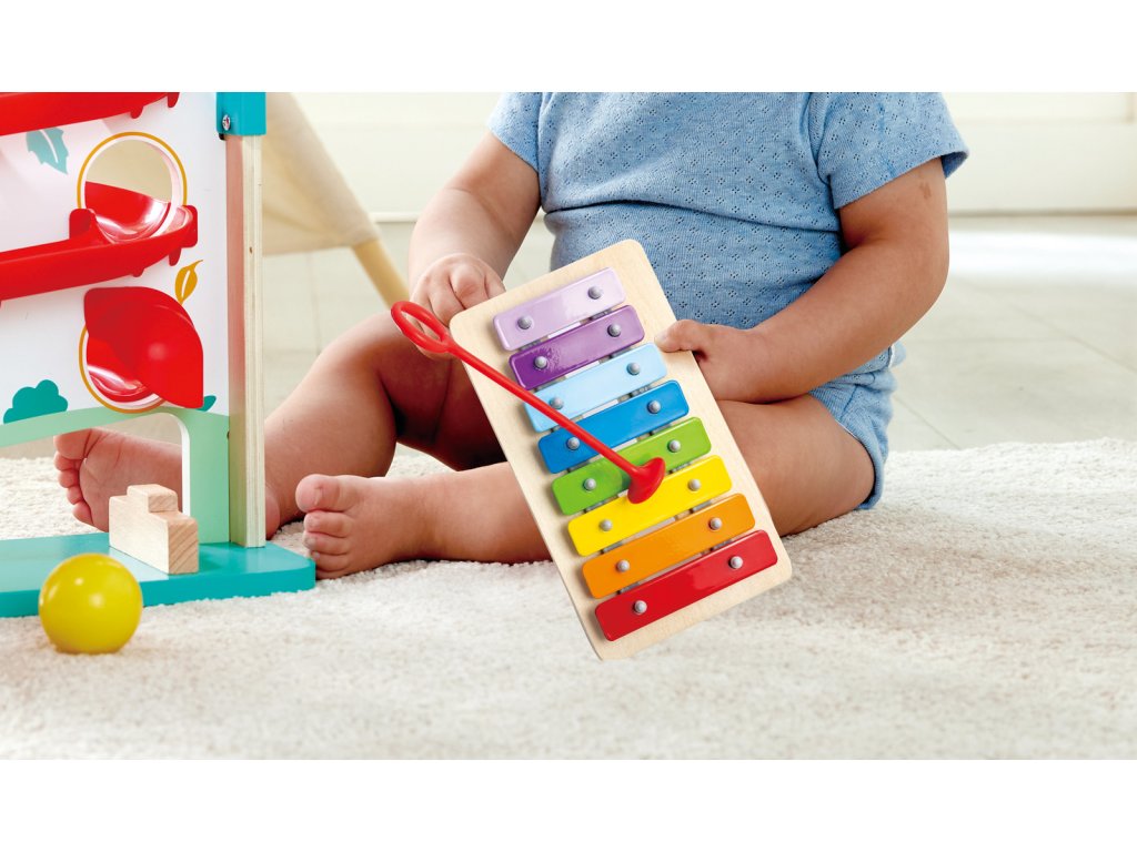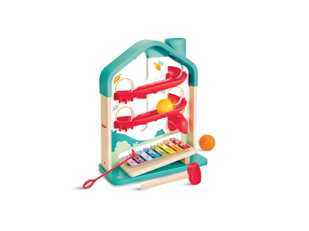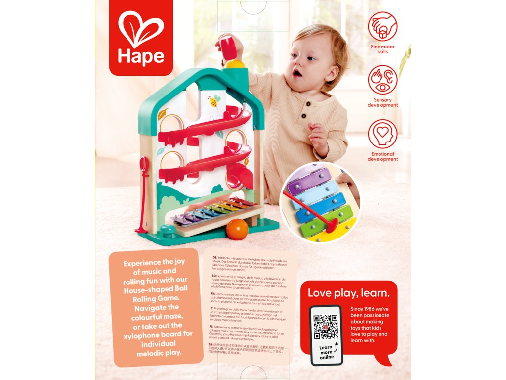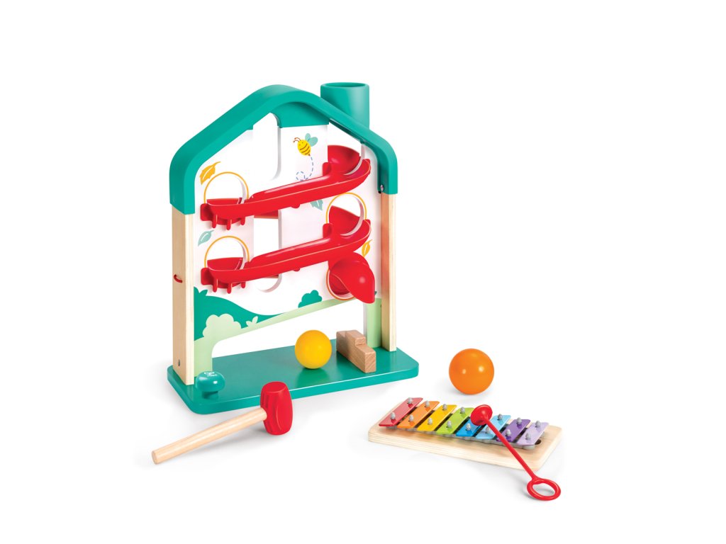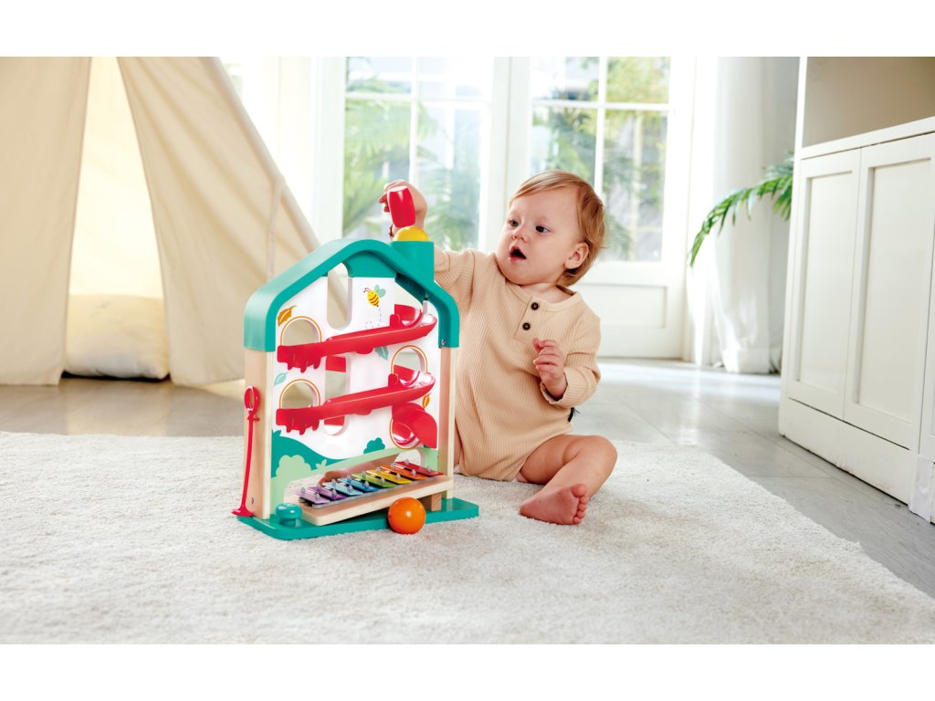 Zažijte radost z hudby a kuličkové dráhy s naší hrou ve tvaru domečku. Procházejte se barevným bludištěm nebo vyjměte desku xylofonu pro individuální melodickou hru. Režim hraní 2v1: Můžete hrát jako běh s míčem nebo můžete vyjmout xylofon a jednoduše hrát na nástroj. Manipulace s míčky na rolovací dráze a údery do xylofonových kláves zlepšuje dětskou koordinaci ruka-oko a jemnou motoriku. Děti se učí o vztazích příčin a následků, když pozorují, jak jejich činy, jako je koulení míčků nebo hra na xylofon, vytvářejí určité výsledky. Rozměr: 29.4x35x16.8 cm. Rozměr balení: 30x17.3x36 cm. Věk 1+
