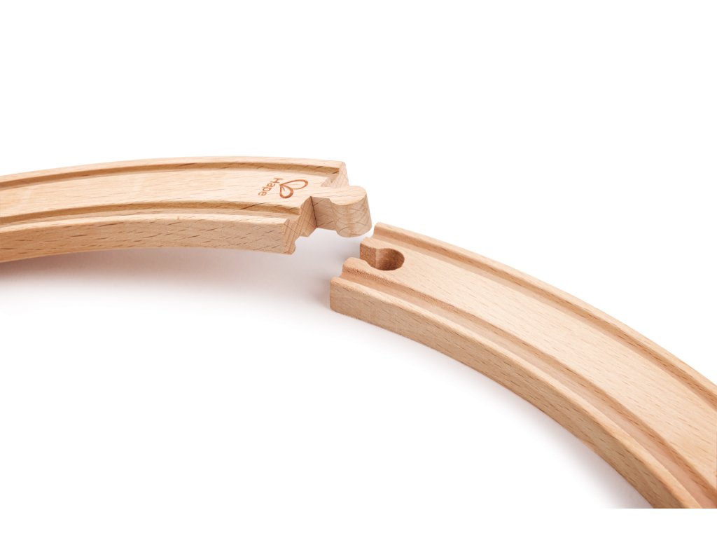 Postavte si svou vlastní železniční trať a pak ji dále rozšiřujte pomocí dalších dřevěných kolejí, jako je dlouhá zatáčka. Přidejte dostatek kusů a vaše železnice se protáhne na míle daleko. Balení obsahuje 4 kusy kolejí. Rozměr balení: 15x4x22cm. Věk 3+