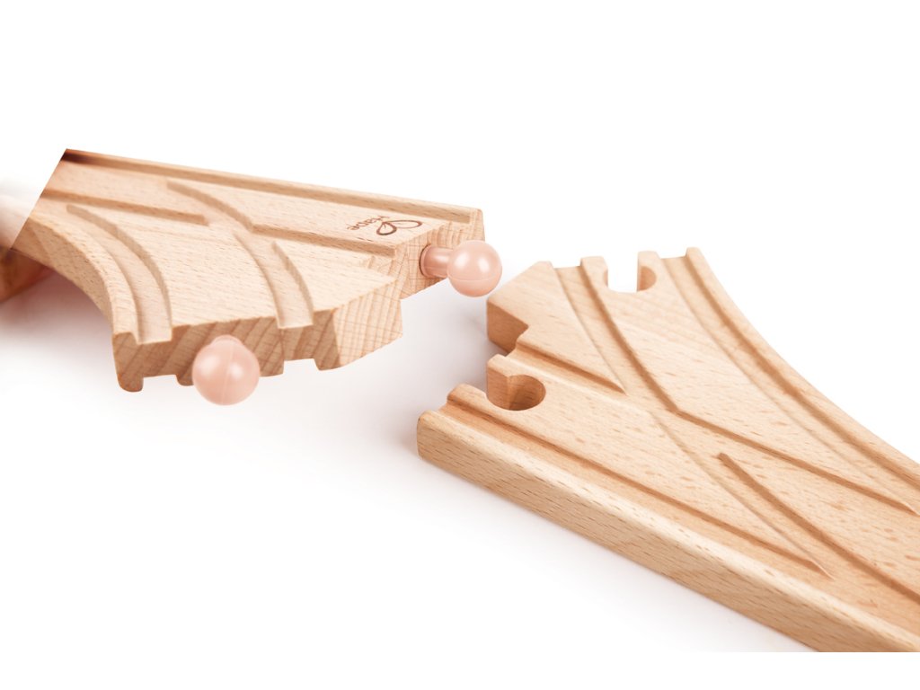 Postavte si svou vlastní železniční trať a pak ji dále rozšiřujte pomocí dalších dřevěných kolejí, jako je výhybková kolej. Přidejte dostatek kusů a vaše železnice se protáhne na míle daleko. Balení obsahuje 2 kusy kolejí. Rozměr: 16x3x10 cm. Rozměr balení: 15x4x22cm. Věk 3+