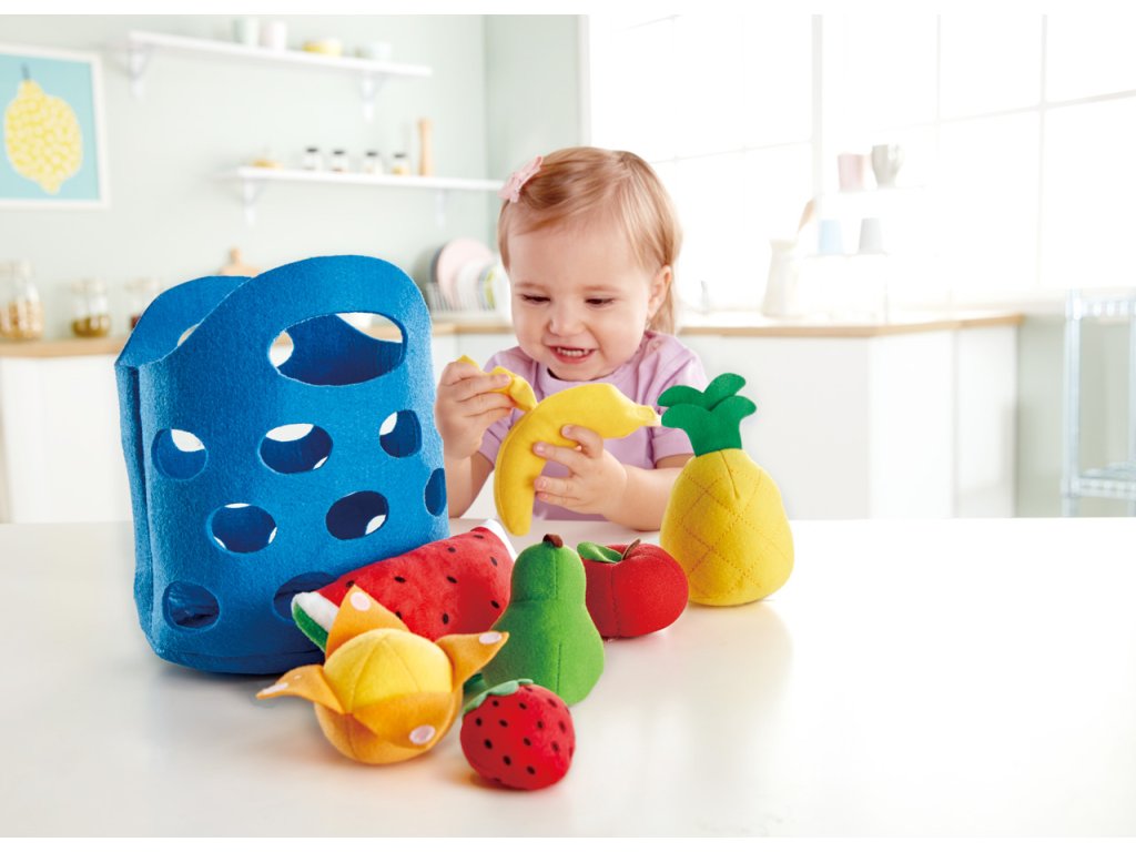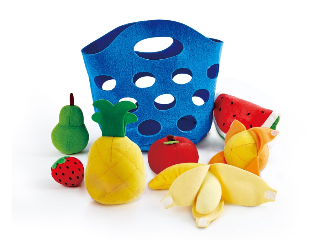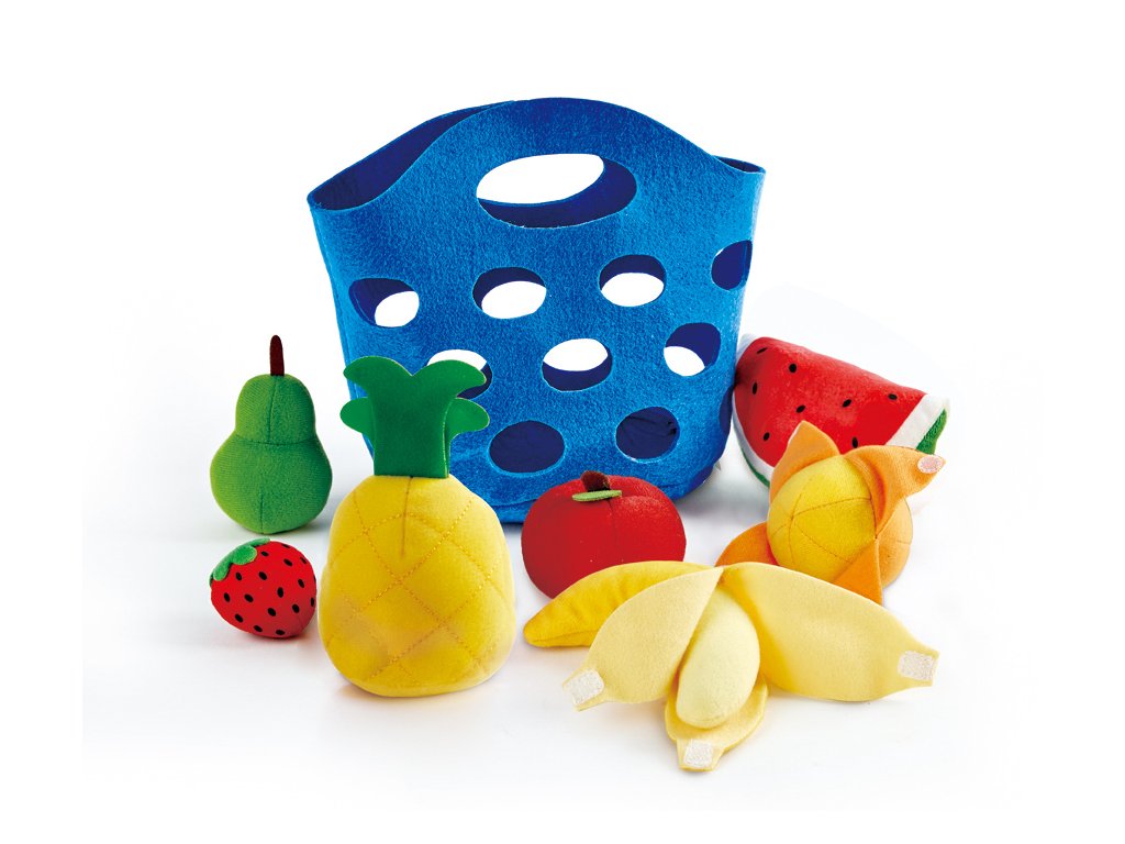 Naplňte tento měkký plstěný koš sedmi kousky vašeho oblíbeného ovoce. Oloupejte banán a pomeranč a podělte se se svými přáteli! Vyrobeno z měkkých tkanin speciálně pro malé prsty dětí, snadné uchopení a držení. Rozměr balení: 22 x 16 x 18 cm. Věk: 18m+. Video: https://www.youtube.com/watch?v=Tp4roIUERM4