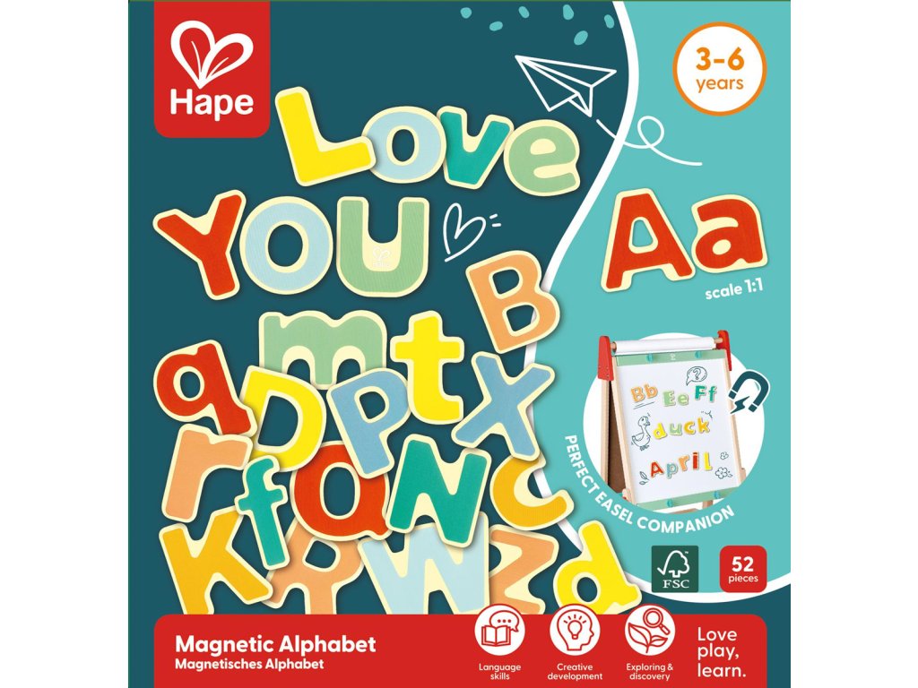 Balení 52 magnetických písmen, díky kterým se dítě může začít učit abecedu a její velká a malá písmena. Malým dětem sada pomáhá rozpoznat tvary písmen. Rozvíjí motorické dovednosti při spojování velkých a malých písmen. Rozměr balení: 24,1x24,1x4,1 cm. Věk 3+
