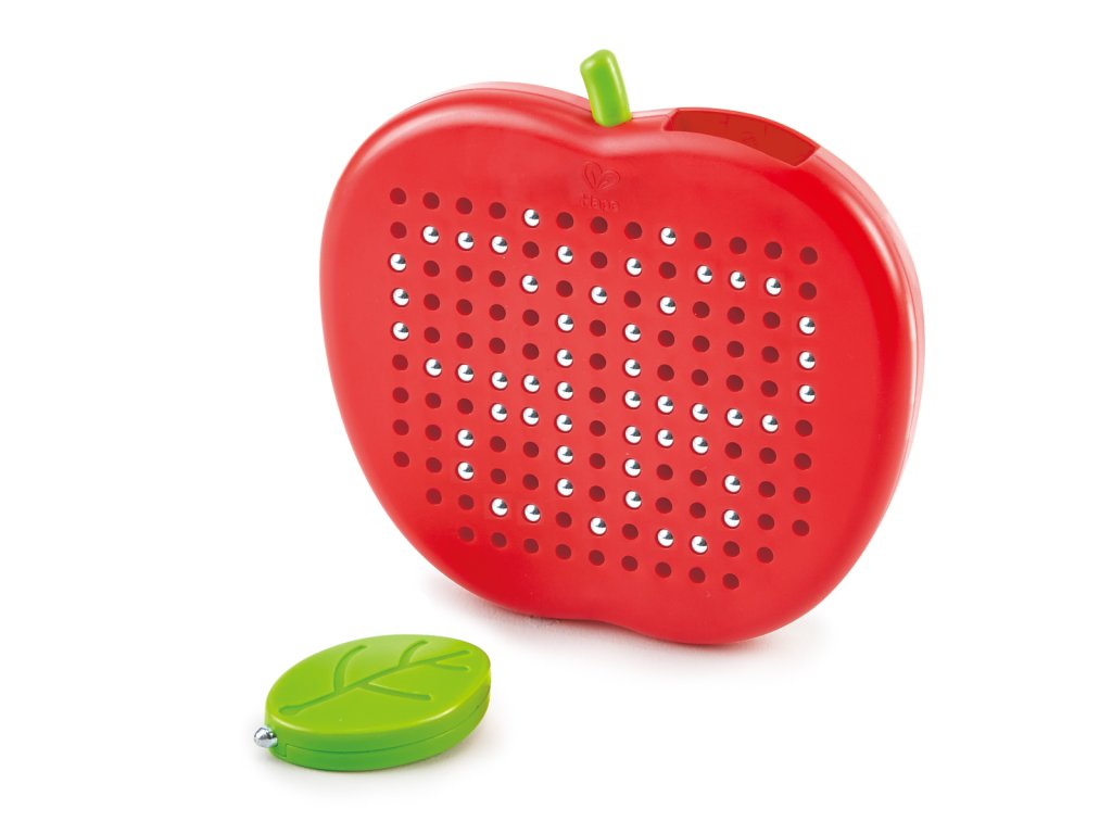 Toto jasně červené jablko je plné kovových kuliček. Použijte přiložené magnetické listové pero k vytváření obrázků, vzorů, čehokoli, co se vám líbí. Rozměry: 12,5 x 14,2 x 1,6 cm Věk: 3+