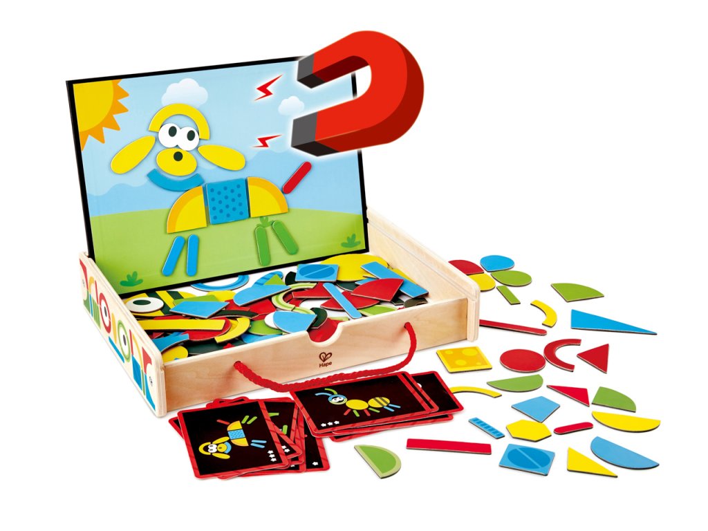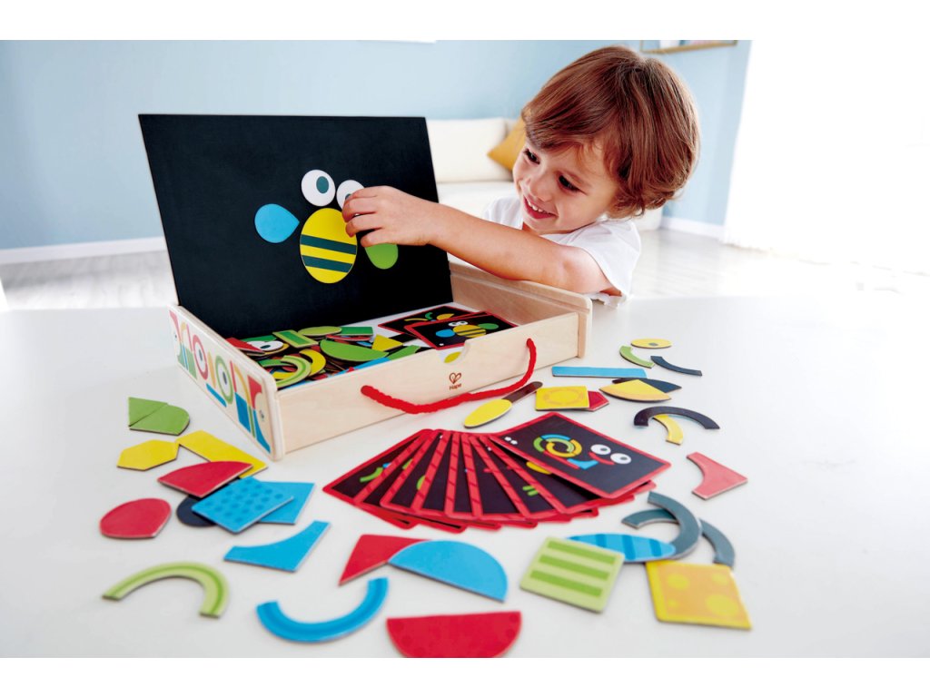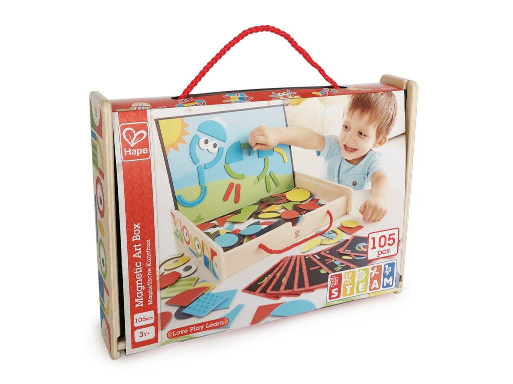 Nechte se unést svou kreativitou s tímto fantastickým magnetickým kufříkem. Vyberte si z 91 přiložených magnetických dílků různých tvarů a barev, umístěte je scénu zobrazenou na vnitřním víku nebo na prázdné zadní straně tvořte dle své fantazie. Součástí sady jsou i kartičky s obrázky pro inspiraci. Vyrobeno z kvalitního a odolného materiálu. Počet dílků: 105. Rozměr balení: 30 x 23 x 6 cm. Věk: 3+. Video: https://www.youtube.com/watch?v=0ne3WVVZ5OI