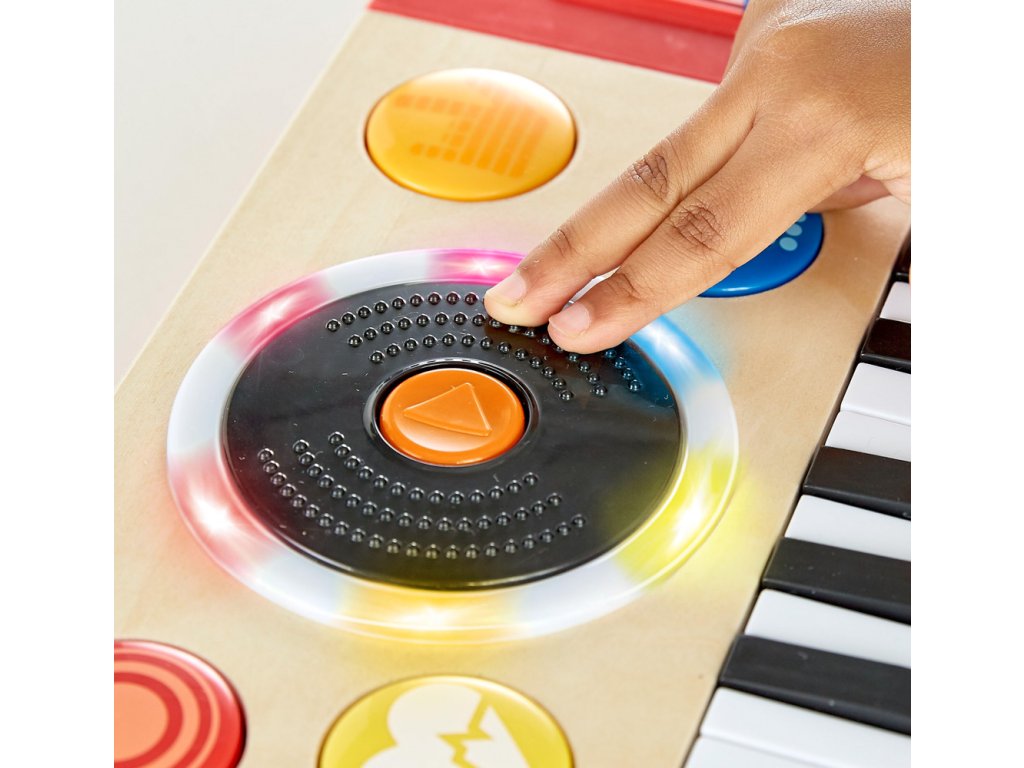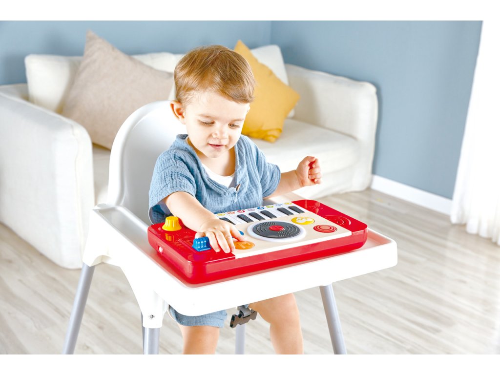 Pomozte svému dítěti objevte hudební nadání s Mixážním pultem HAPE, kdy jako malý DJové rozjedou své první melodie. Tento hudební nástroj má 18 kláves klavíru a černou desku. Vyberte si mezi čtyřmi různými nástroji, 18 zvukovými efekty, čtyřmi DJ efekty a pěti stopami na pozadí, do kterých můžete míchat hudbu. Hlasitost lze nastavit a hudebním mistrům se bude líbit posuvník tempa, který mění rychlost hudby. Bude se jim také líbit interaktivní hra, kdy se stanou DJem herny, zatímco světla blikají do rytmu. Malé děti se budou při hraní nejen bavit, ale také si osvojí základní hudební dovednosti, lásku k hudbě a zároveň zdokonalí koordinaci ruka-oko a smyl pro rytmus. Rozměr: 34 x 4,2 x 18,5 cm. Rozměr balení: 35,5 x 15,5 x 20,5 cm. Baterie: 3 x AA (baterie jsou součástí balení). Věk: 1+. Video: https://www.youtube.com/watch?v=Fc99xhm9UbQ