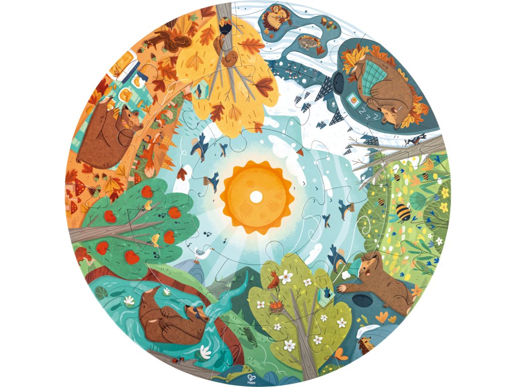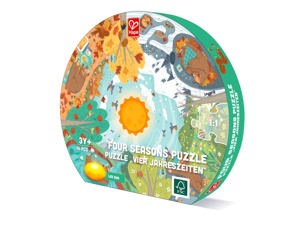 Poznávejte a objevujte roční období společně s přátelským medvědem v této úžasné hádance! Toto 16dílné puzzle s LED sluncem a oboustranným plakátem je ideální pro povzbuzení představivosti a zvědavosti. Balení. 30x6,2x34cm. Věk: 3+