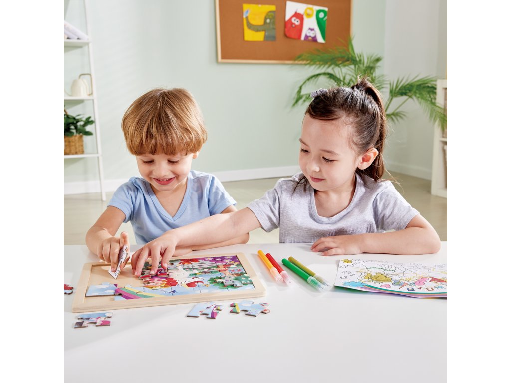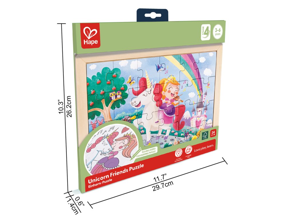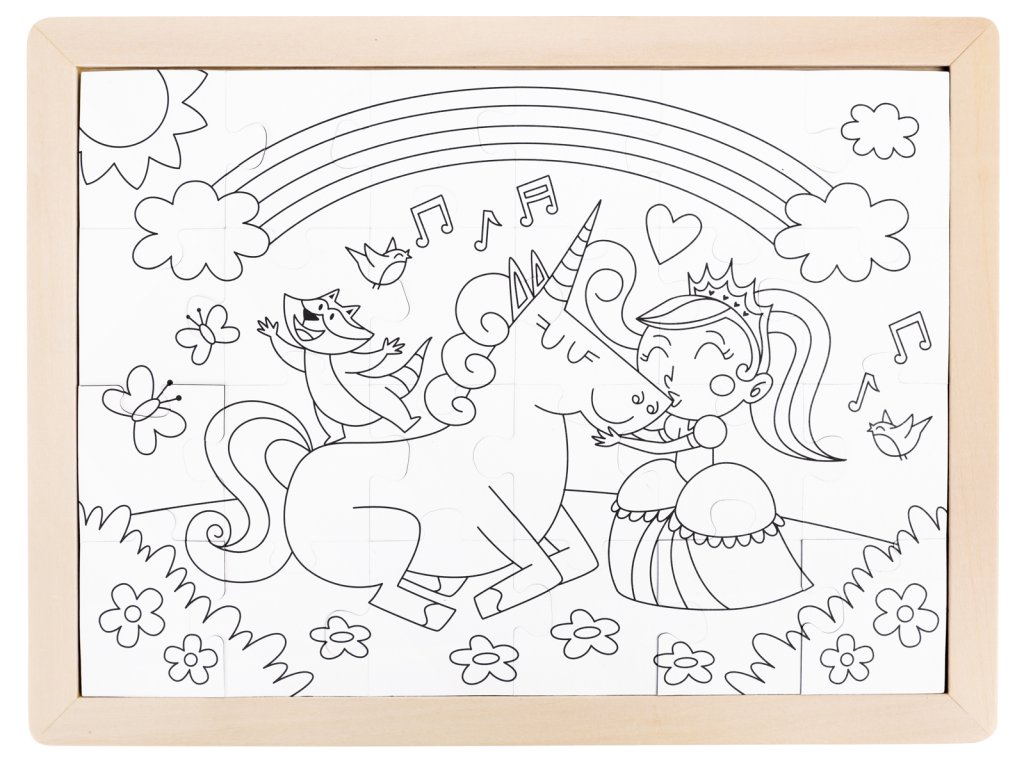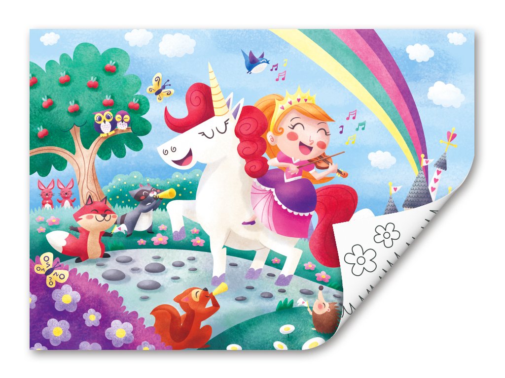 Vlož do svého hraní trochu skřítkového prachu s tímto kouzelným puzzle. Tato krásná 24dílná skládačka obsahuje kouzelnou scénu s duhou, květinami a pohádkovou princeznou na jednorožci. Na zadní straně je nenabarvená šablona, ??kterou si můžete vytvořit vlastní puzzle. Skládačky jsou skvělé pro podporu koordinace ruka-oko, jemné motoriky a rozvíjení strategií řešení problémů. Skládačky jsou skvělé pro povzbuzení rozpoznávání barev a kreativitu. Balení: 26,2x1,4x29,7cm. Věk: 3+