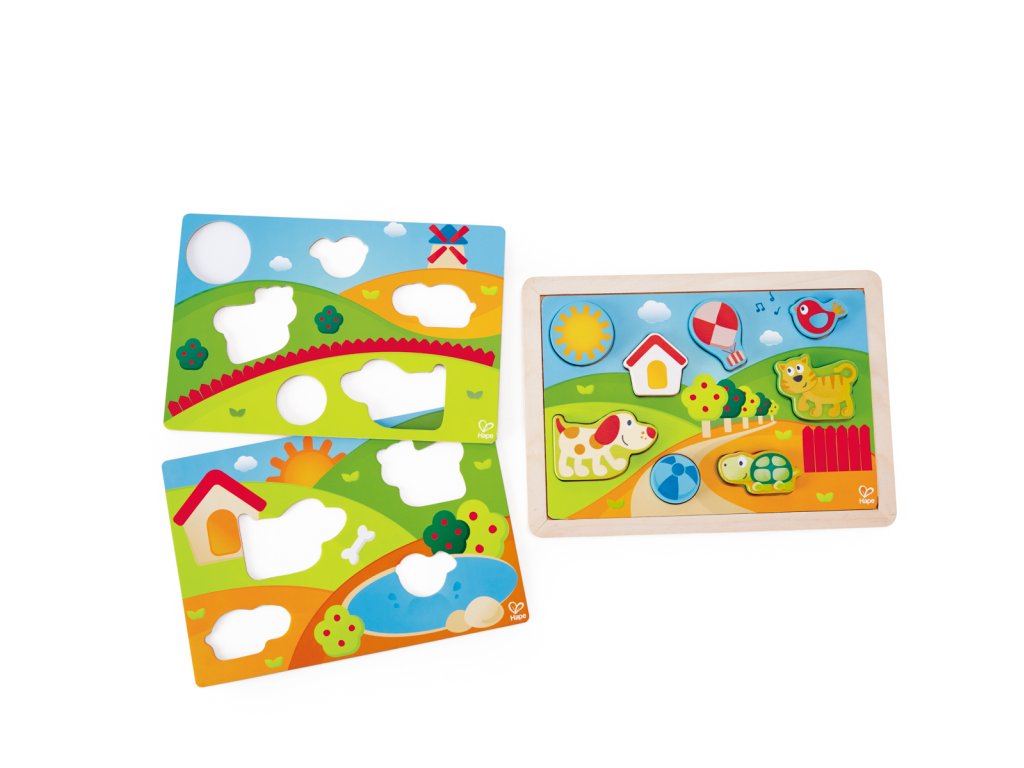 Zažijte den v Pepeově světě s jeho přáteli! Tyto puzzle 3v1 obsahují tři různé základní desky s měnícími se dílky pro každou scénu. Dokážete sladit správný tvar s otvorem? Rozvíjí jemnou motoriku a dětskou představivost. Rozměr balení: 30x3x24 cm. Věk 12m+